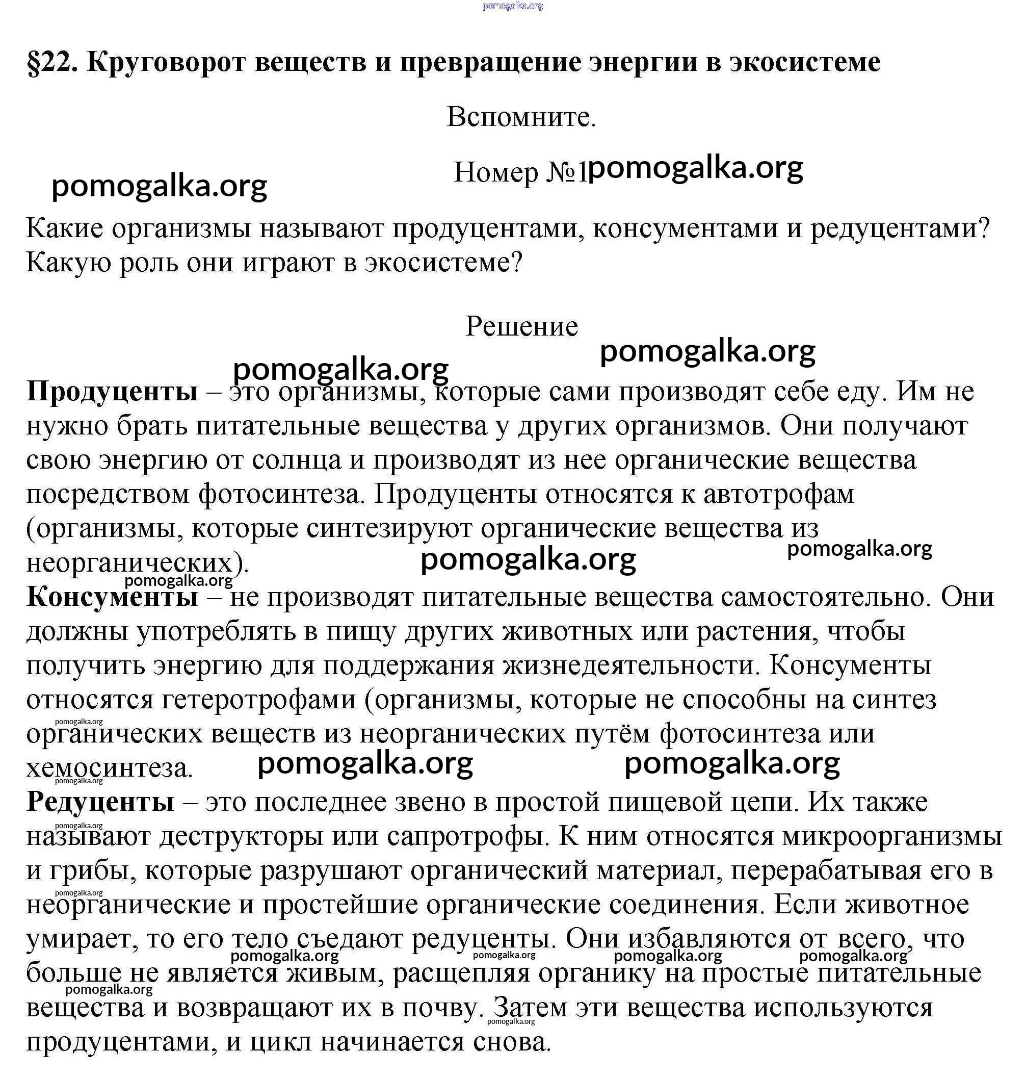 §22. Круговорот веществ и превращение энергии в экосистеме