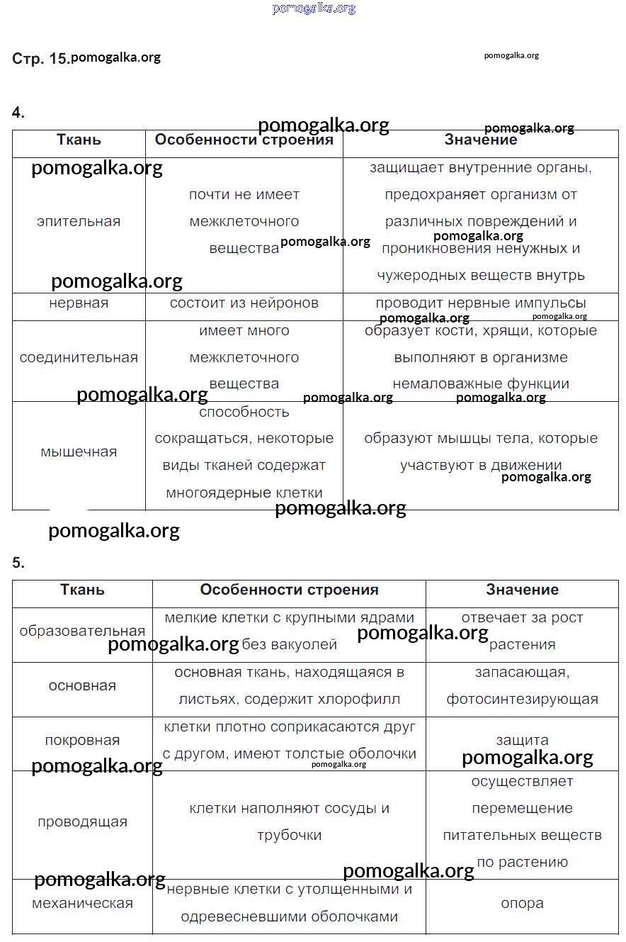 Готовые ответы - Биология 5 класс рабочая тетрадь Корнилова О.А. - страница № 15