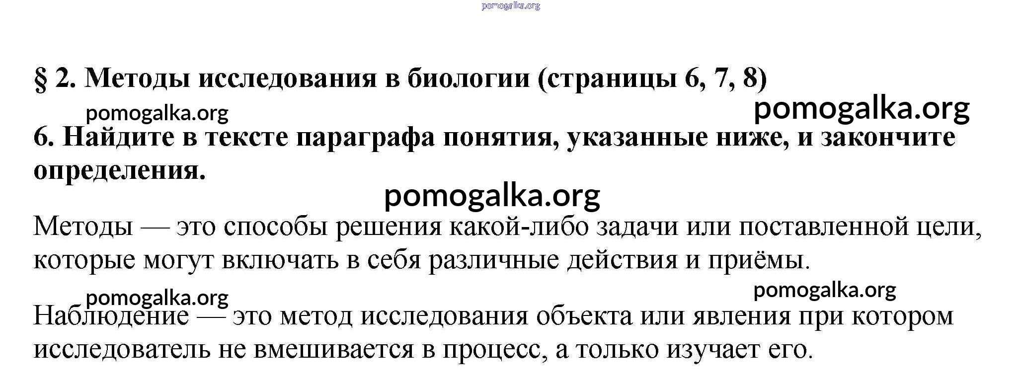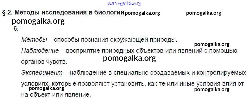 Готовые ответы - Биология 5 класс рабочая тетрадь Пасечник В.В. (к уч. Пасечника) - § 2 стр. 6