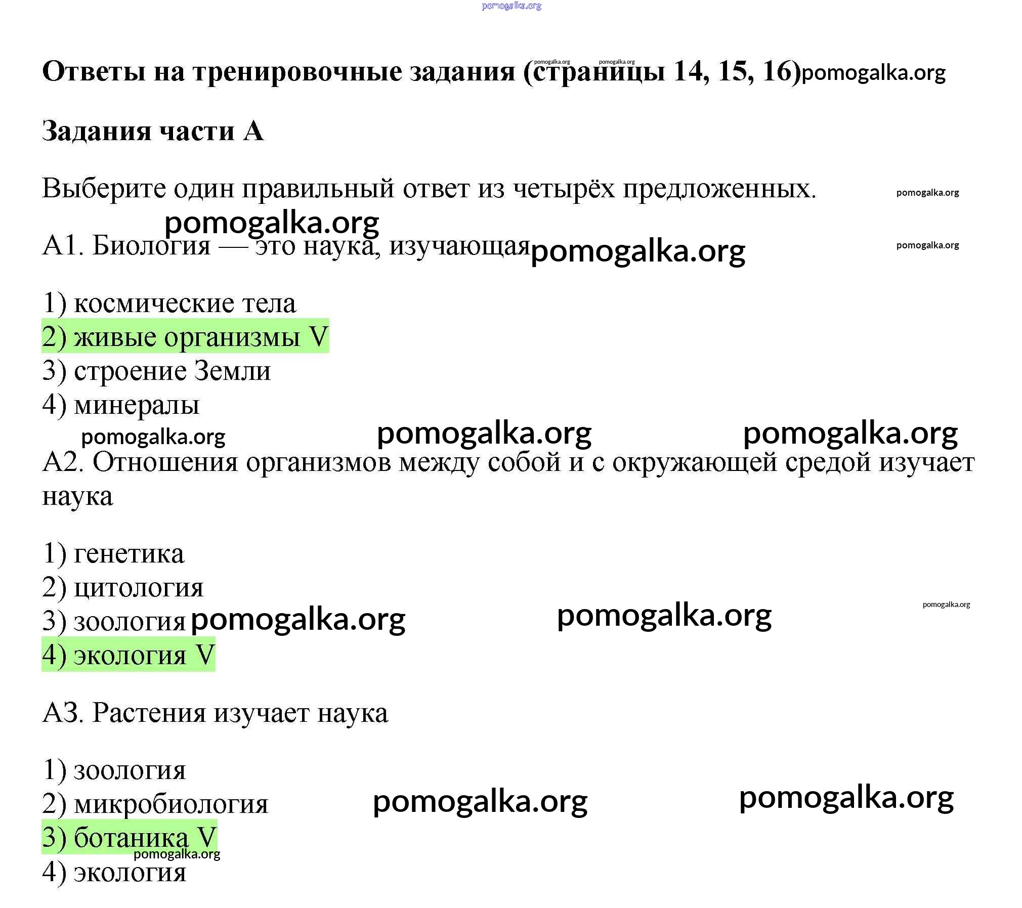 Готовые ответы - Биология 5 класс рабочая тетрадь Пасечник В.В. (к уч. Пасечника) - тренировочные задания стр.14