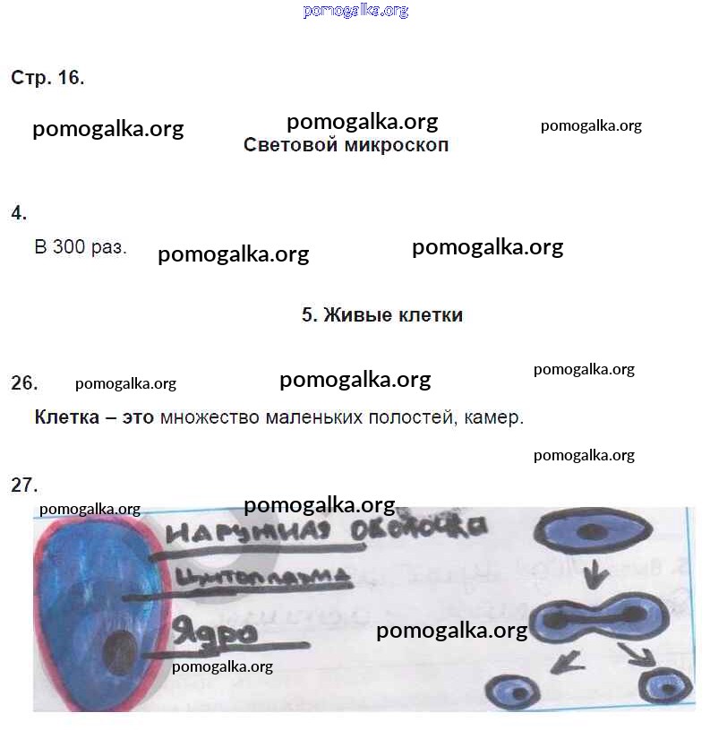 Готовые ответы - Биология 5 класс рабочая тетрадь Сонин Н.И. (к уч. Сонина) - часть 1. живой организм: строение и изучение 16