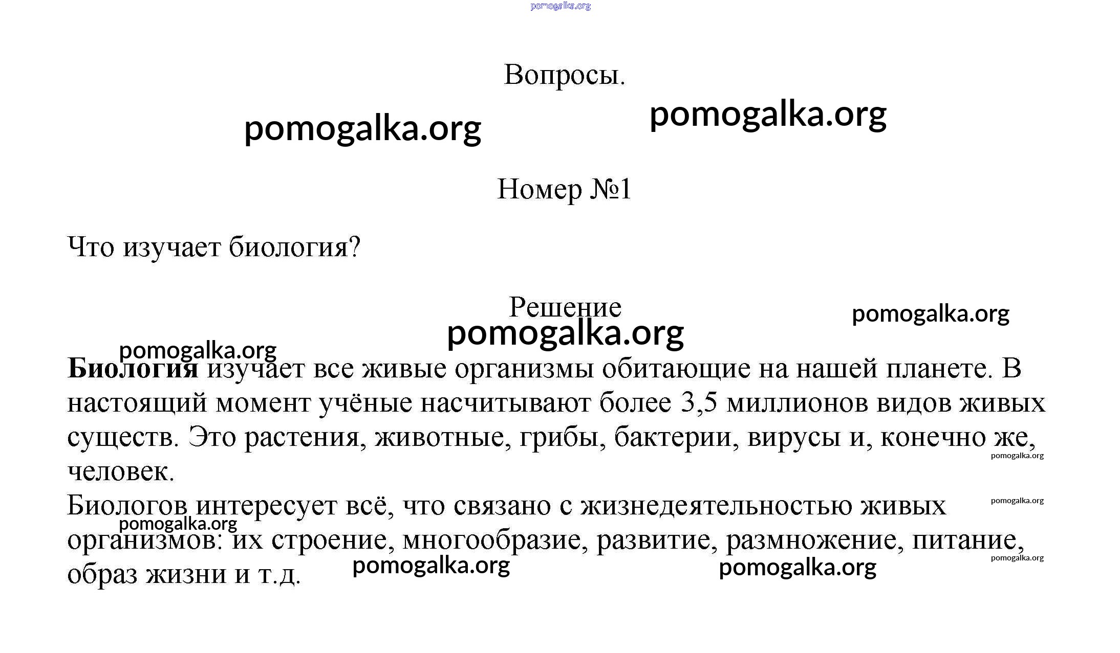 Готовые ответы - Биология 5-6 класс Пасечник В.В. - вопрос §1 1