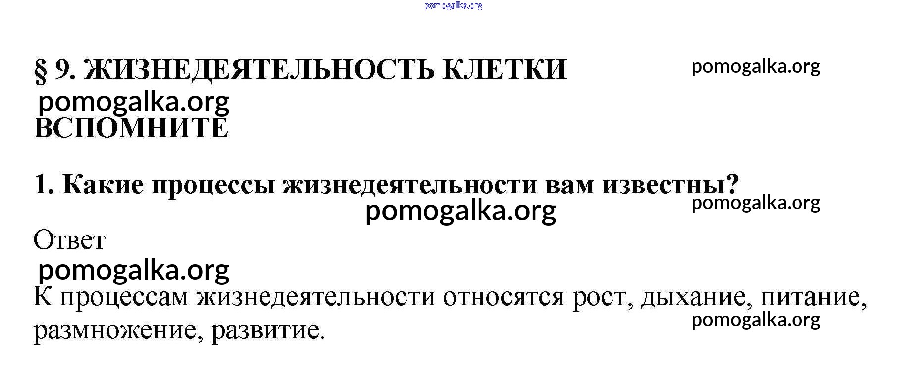 Готовые ответы - Биология 5-6 класс Пасечник В.В. - вспомните §9 1