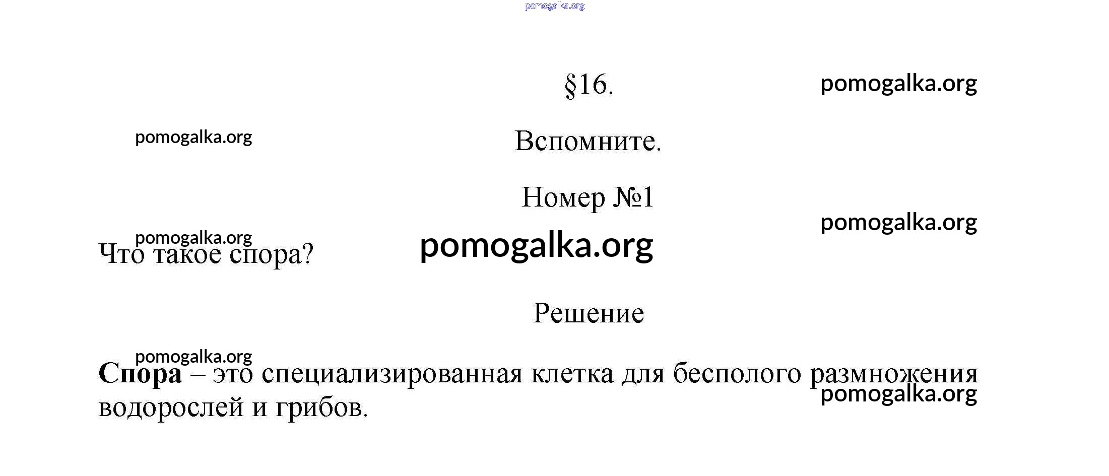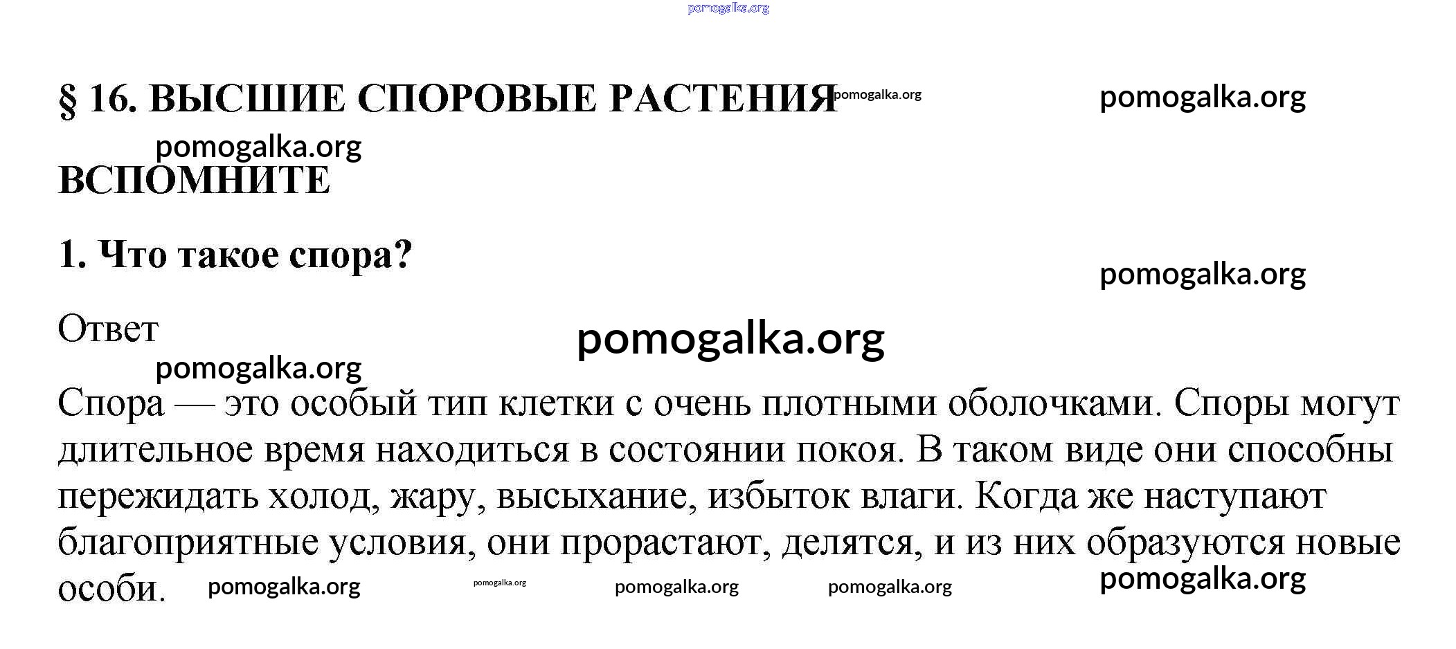 Готовые ответы - Биология 5-6 класс Пасечник В.В. - вспомните §16 1