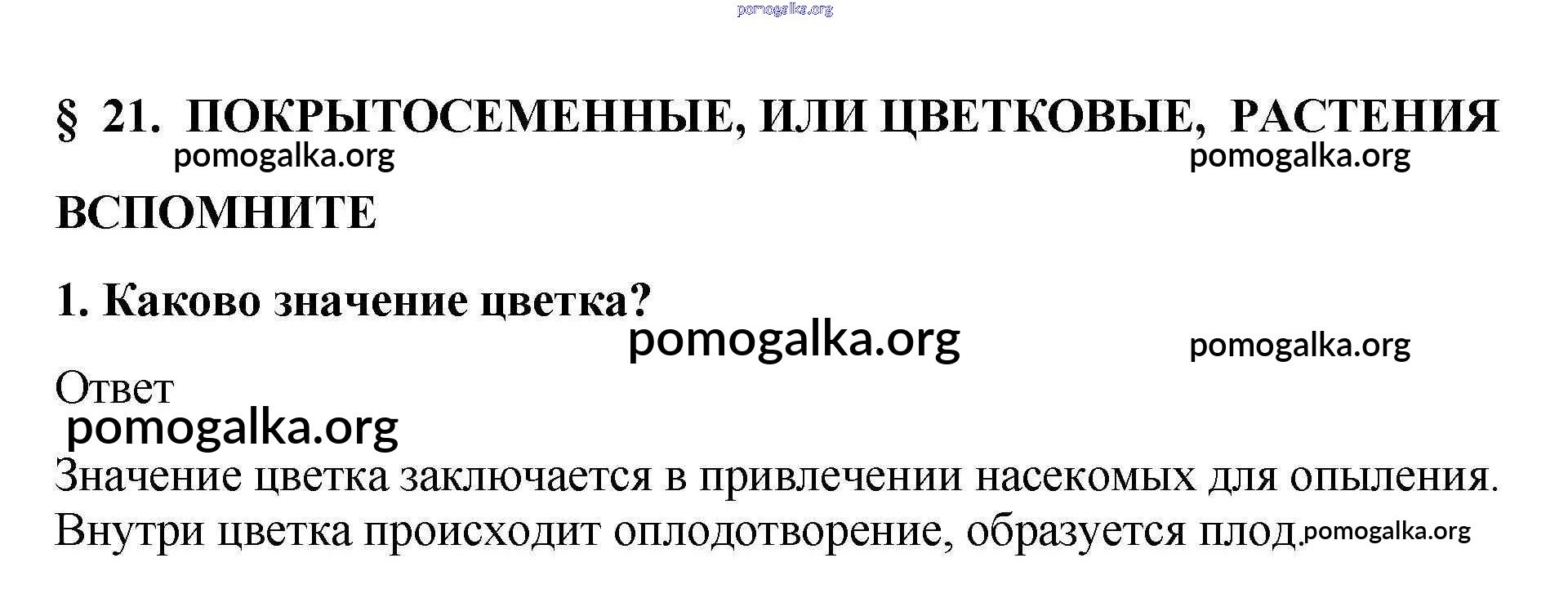 Готовые ответы - Биология 5-6 класс Пасечник В.В. - вспомните §21 1