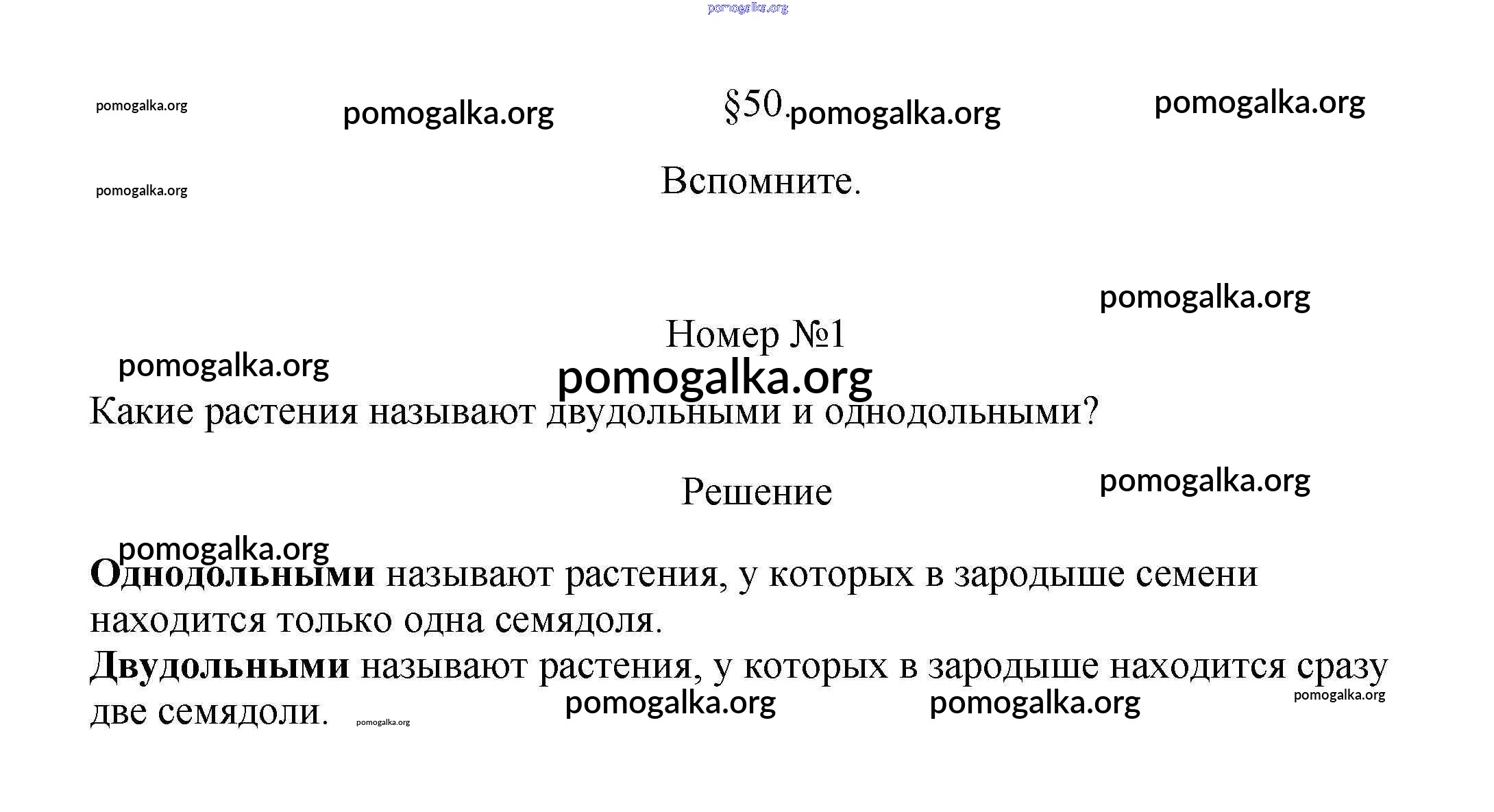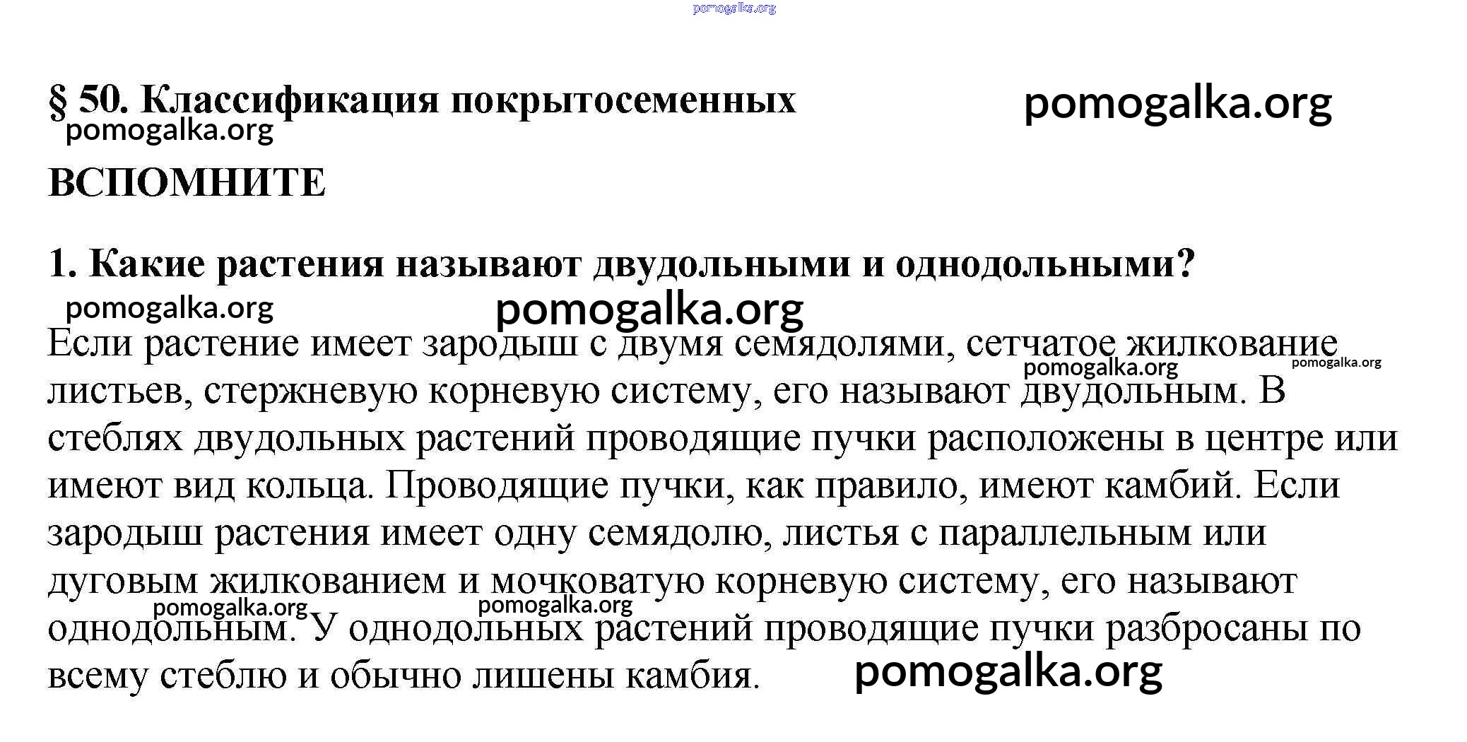 Готовые ответы - Биология 5-6 класс Пасечник В.В. - вспомните §50 1
