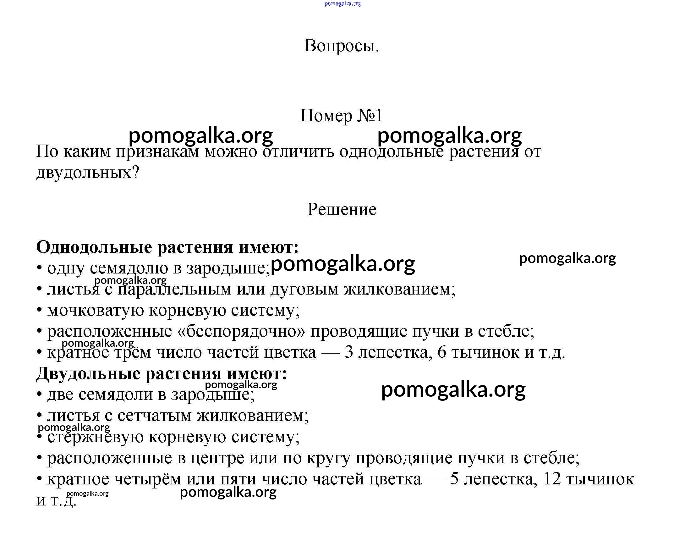 Готовые ответы - Биология 5-6 класс Пасечник В.В. - вопрос §50 1