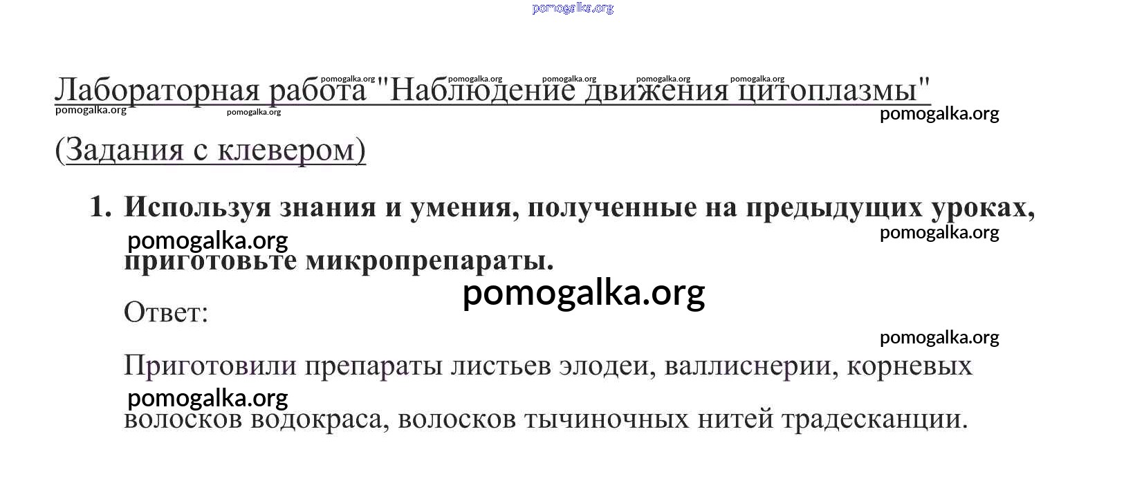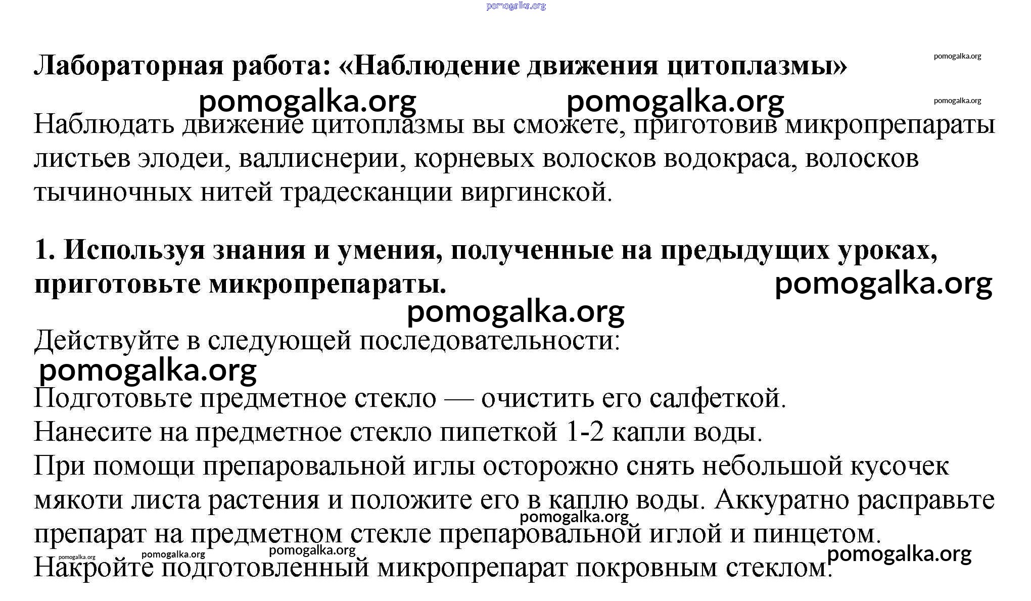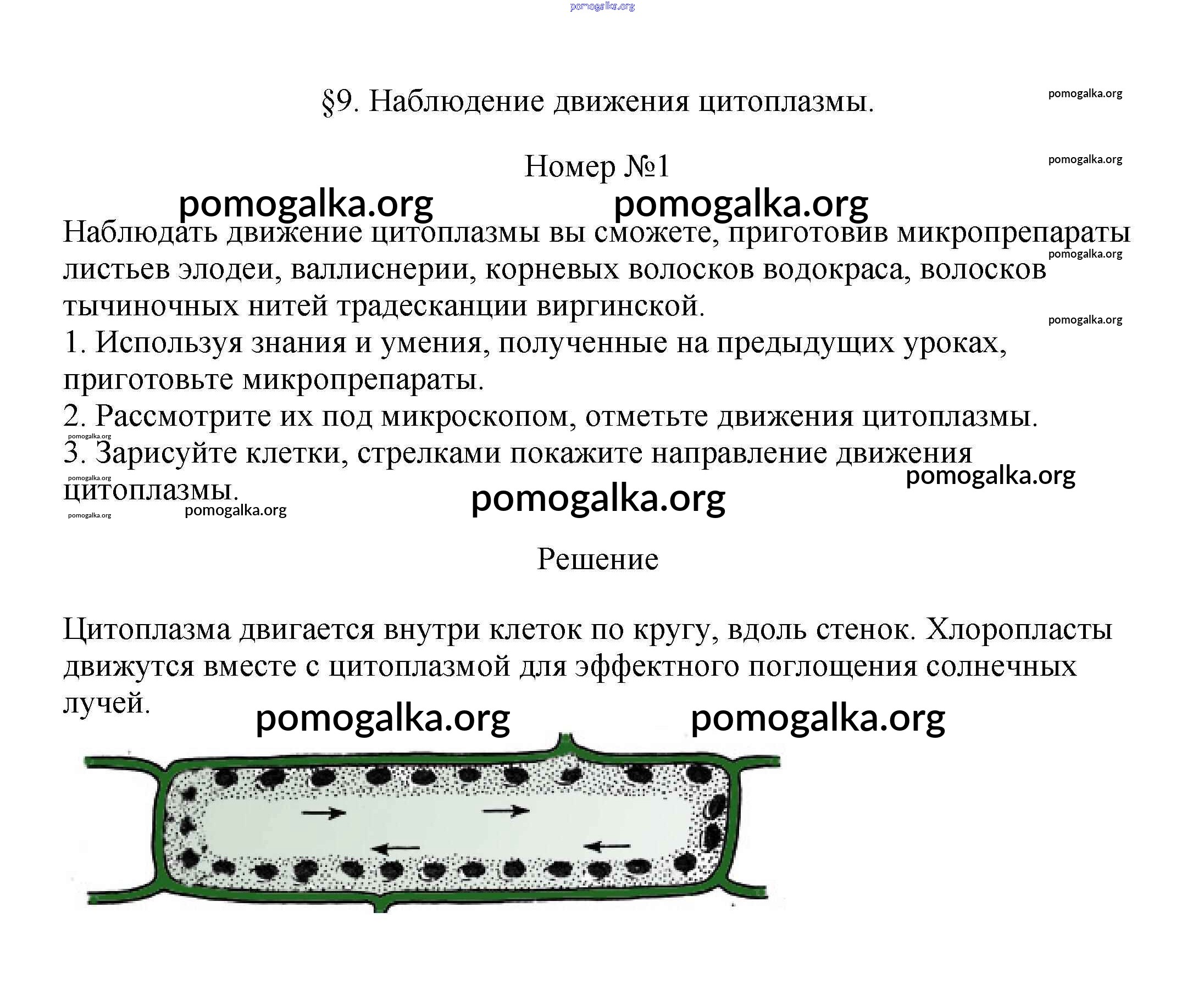 Готовые ответы - Биология 5 класс Пасечник В.В. - наблюдение движения цитоплазмы §9 1