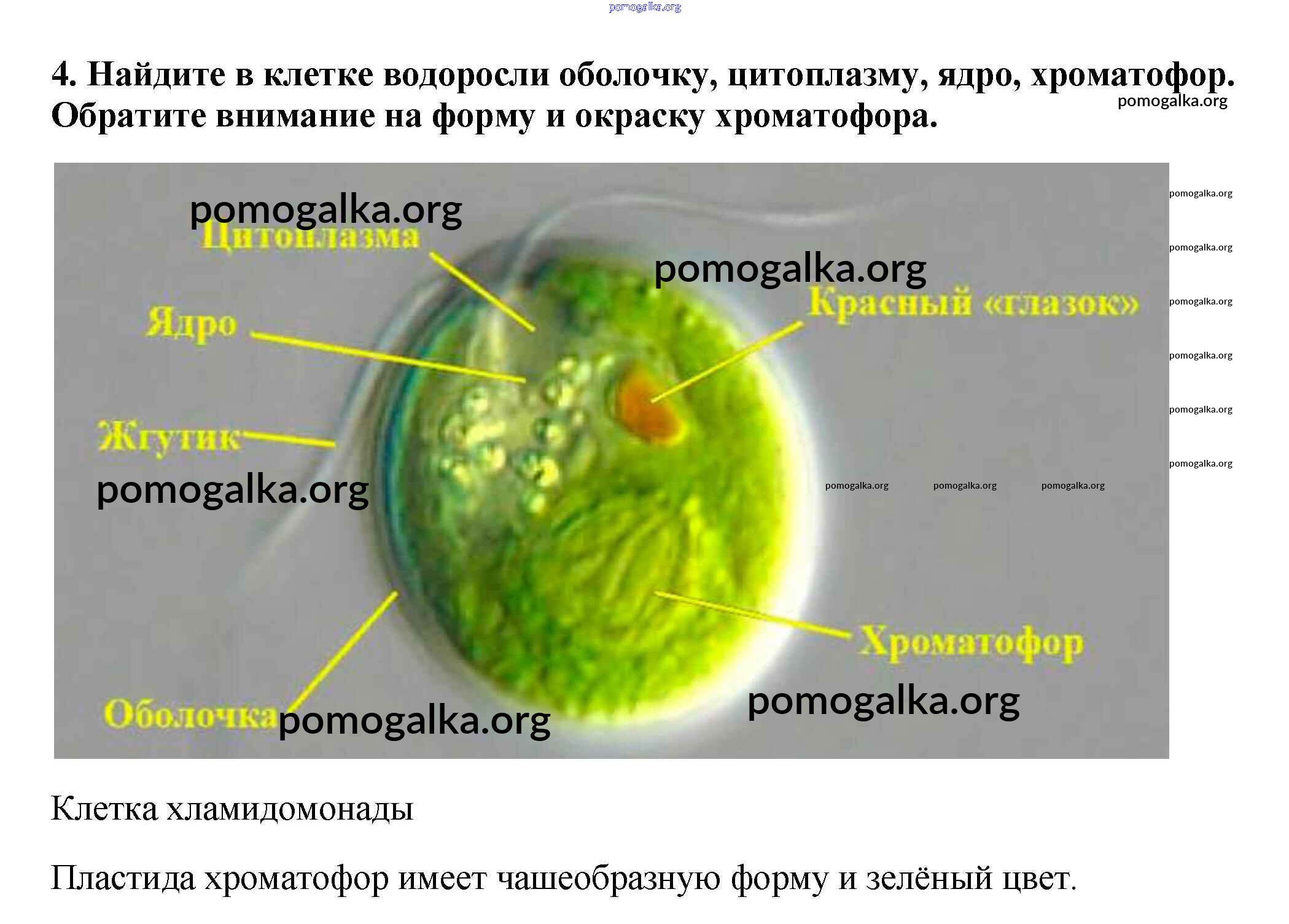 Готовые ответы - Биология 5 класс Пасечник В.В. - строение зелёных одноклеточных водорослей §18 4