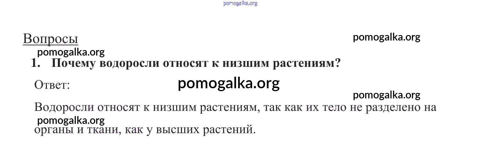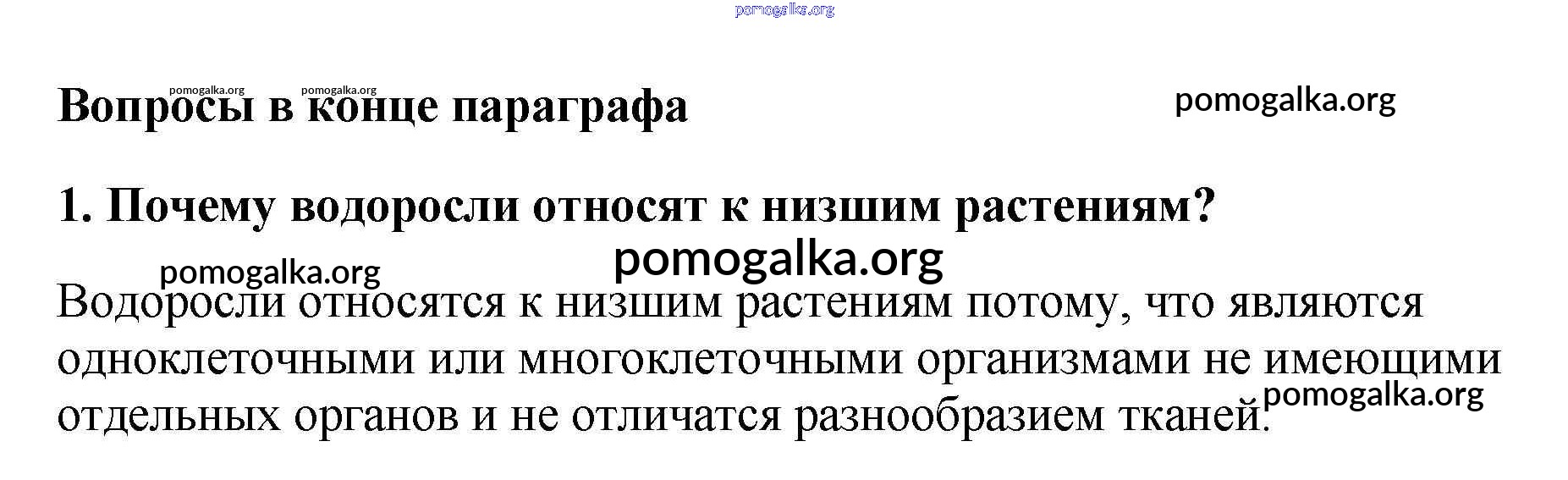Готовые ответы - Биология 5 класс Пасечник В.В. - вопрос в конце параграфа §18 1