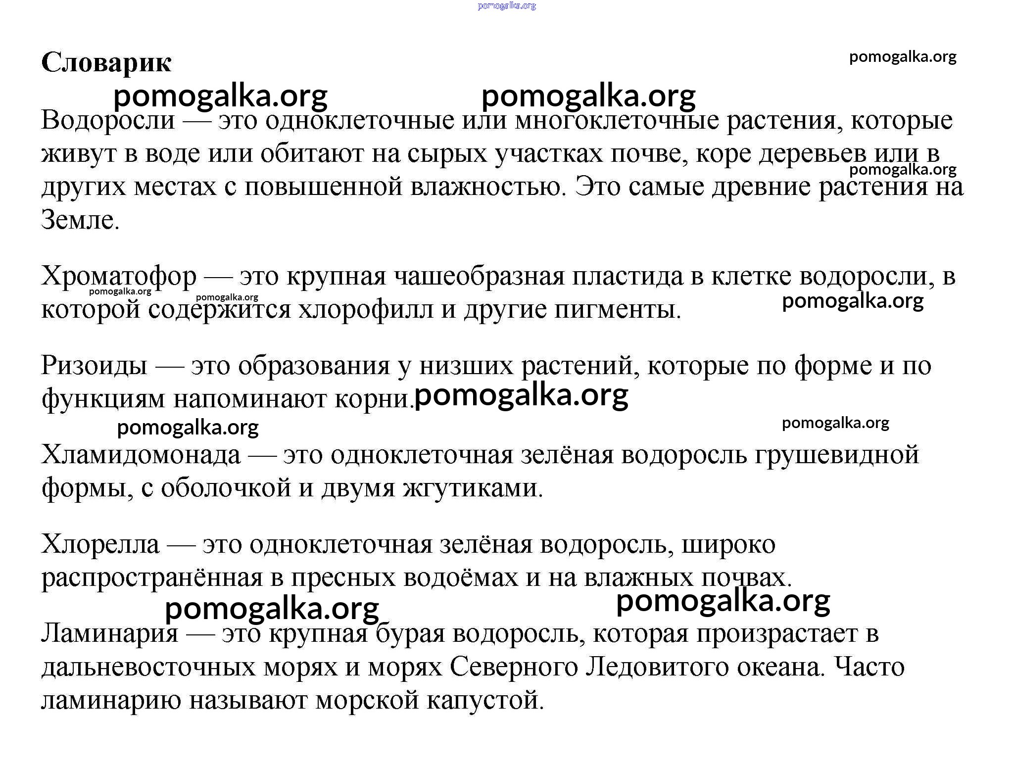 Готовые ответы - Биология 5 класс Пасечник В.В. - словарик §18 1