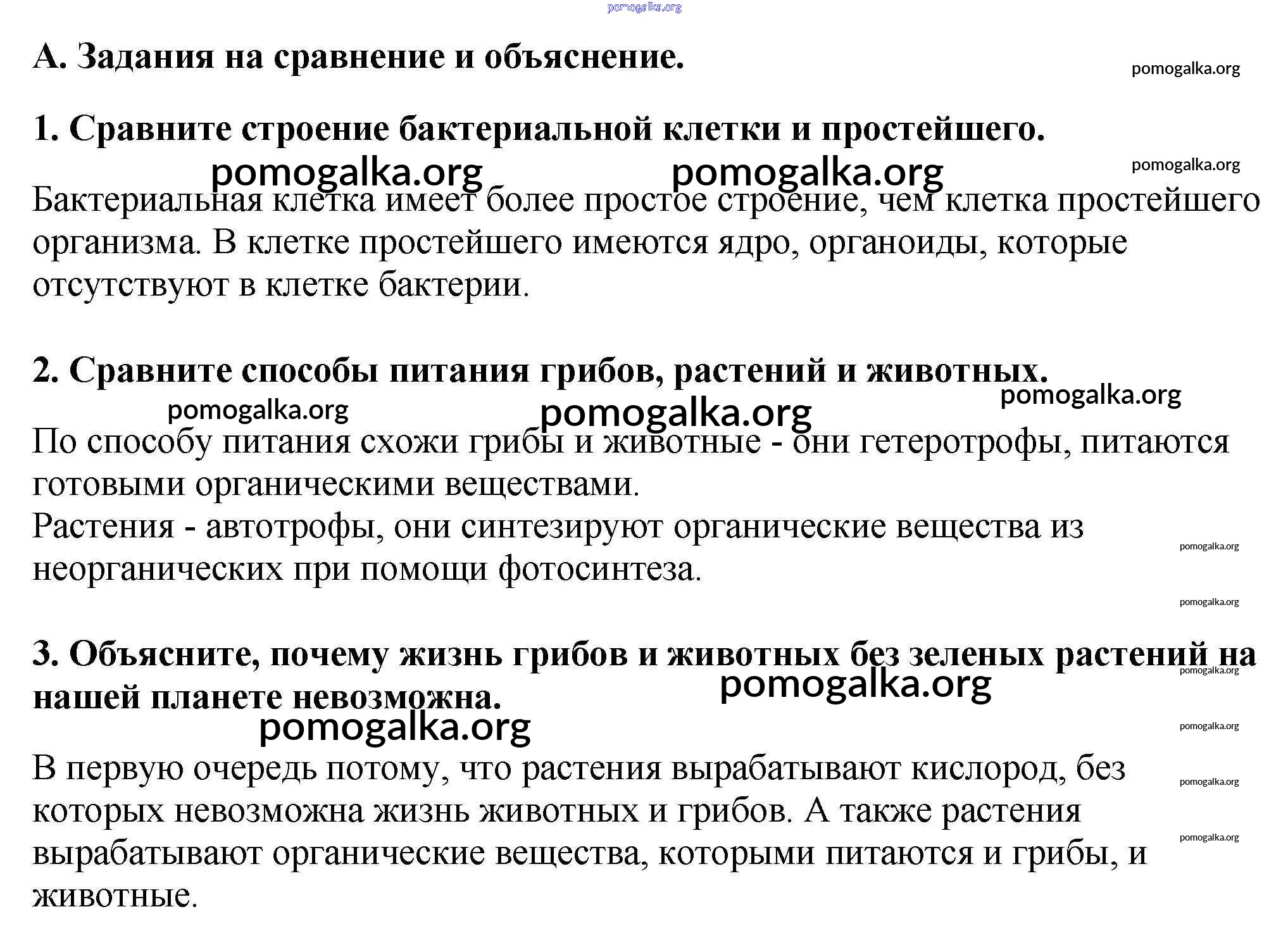 Готовые ответы - Биология 5 класс Пономарева И.Н. - выполните задания глава 2 А