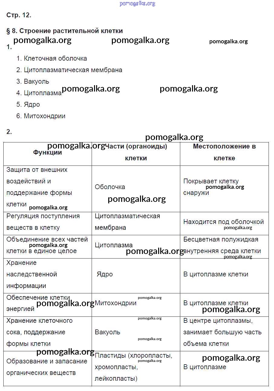 Готовые ответы - Биология 6 класс рабочая тетрадь Исаева Т.А. - страница 12