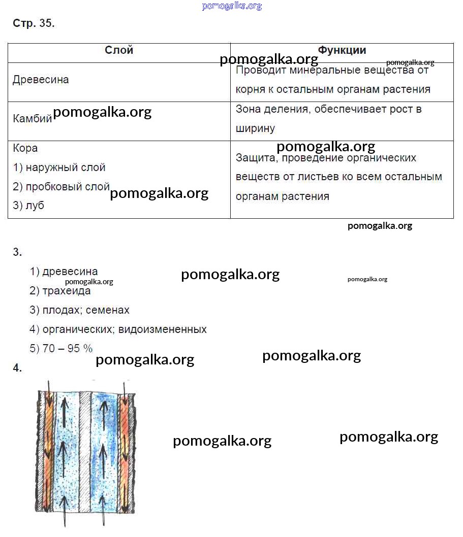 Готовые ответы - Биология 6 класс рабочая тетрадь Исаева Т.А. - страница 35