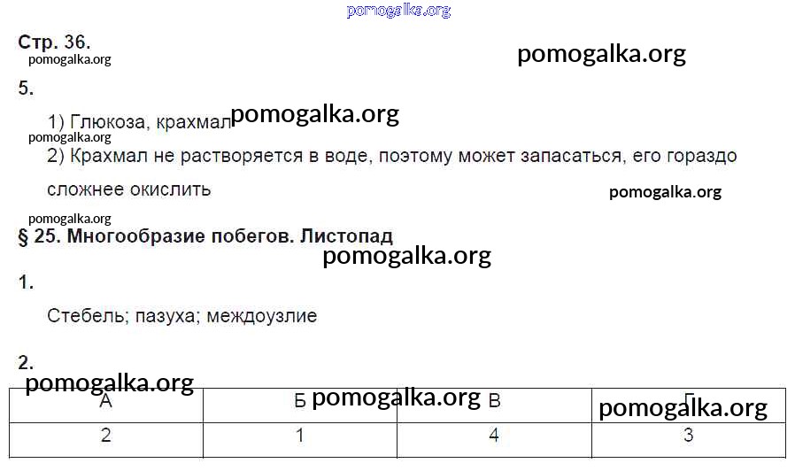 Готовые ответы - Биология 6 класс рабочая тетрадь Исаева Т.А. - страница 36