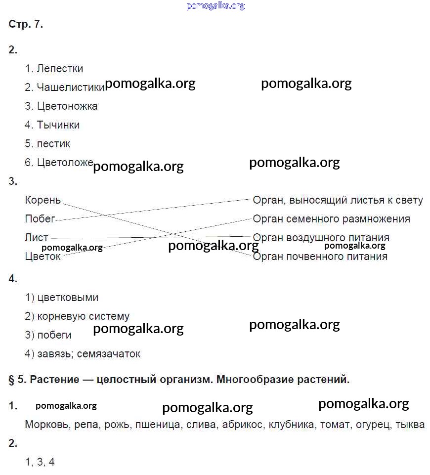 Готовые ответы - Биология 6 класс рабочая тетрадь Исаева Т.А. - страница 7