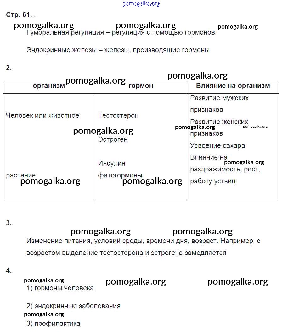 Готовые ответы - Биология 6 класс рабочая тетрадь Пасечник В.В. - страница 61