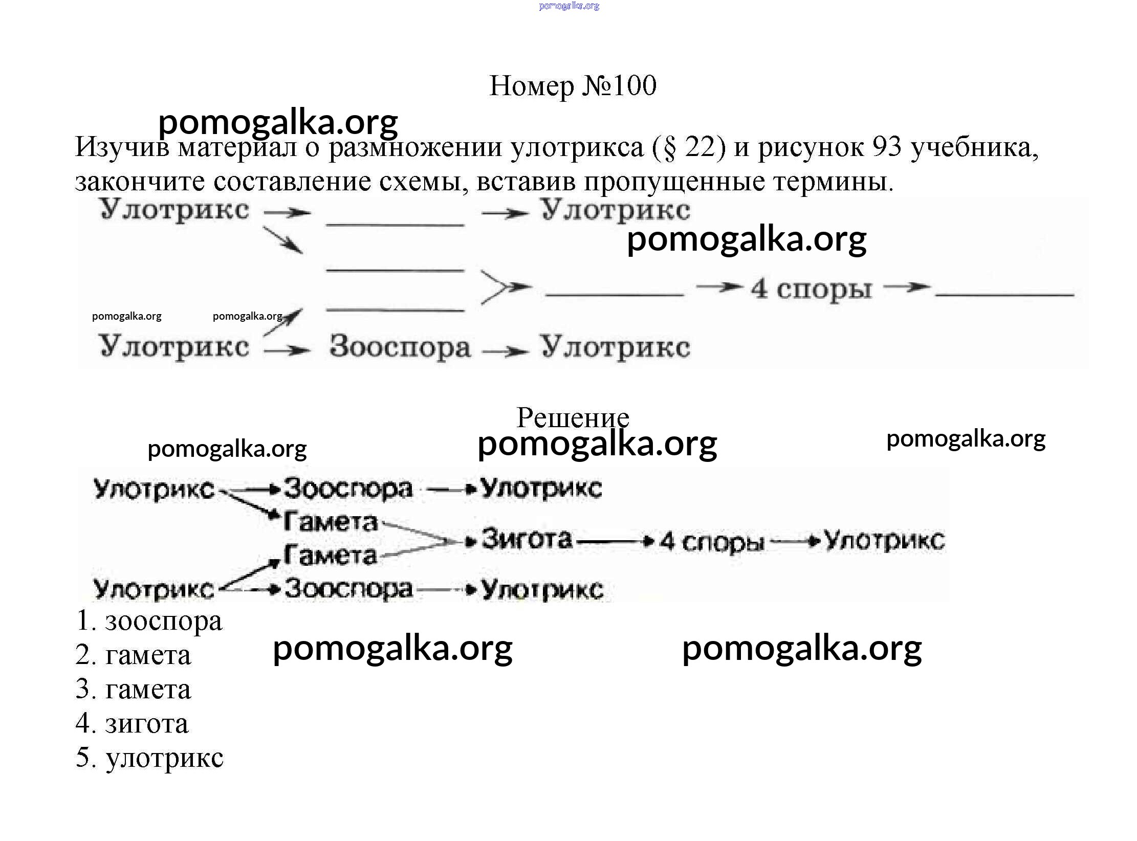 Готовые ответы - Биология 6 класс рабочая тетрадь Пасечник В.В. - упражнение 100