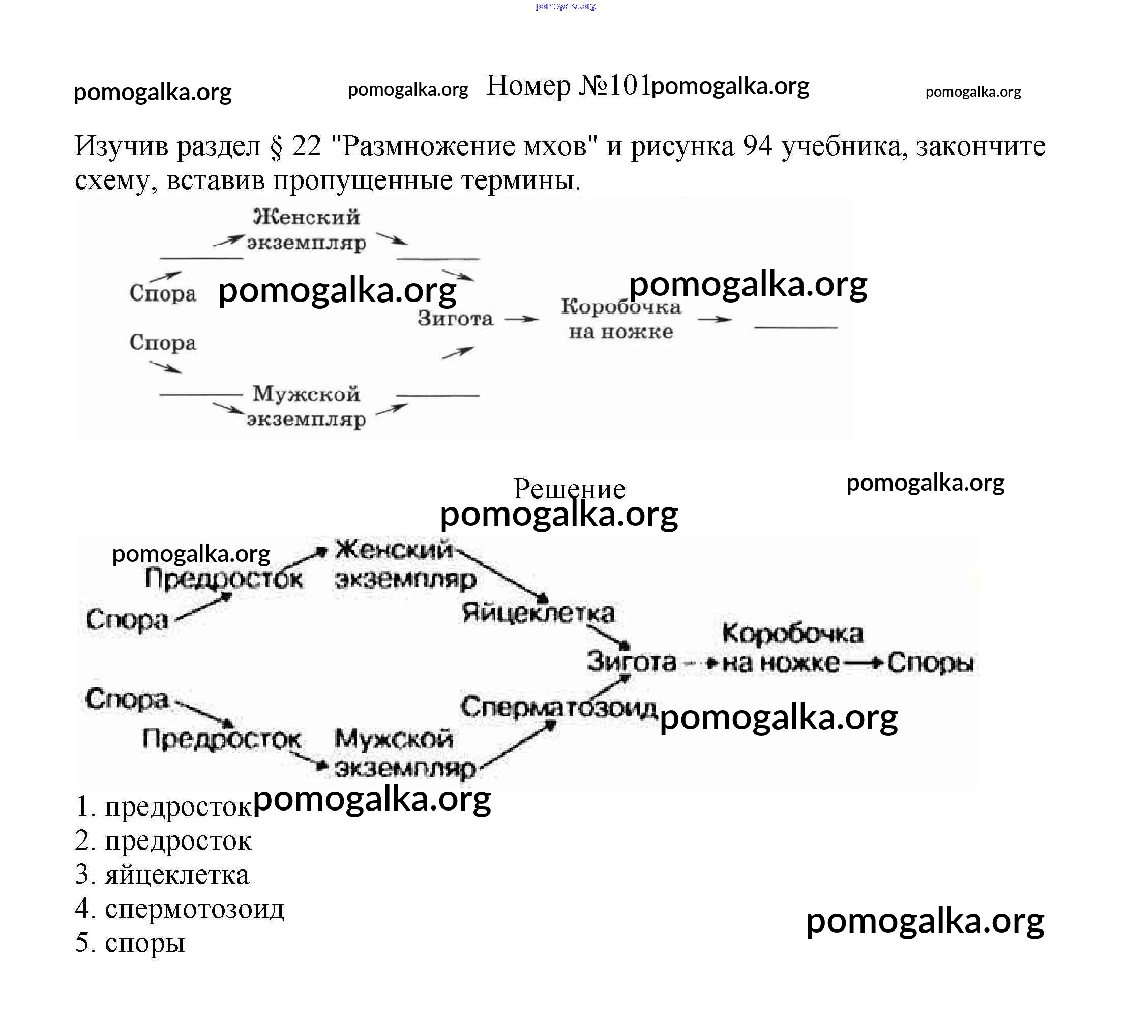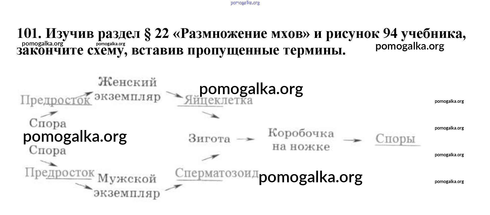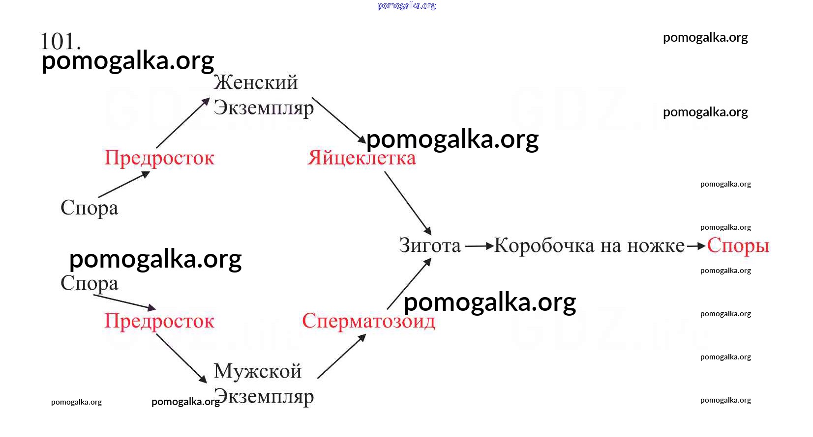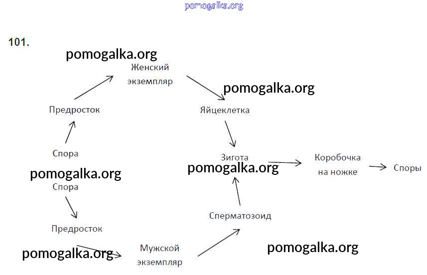 Готовые ответы - Биология 6 класс рабочая тетрадь Пасечник В.В. - упражнение 101