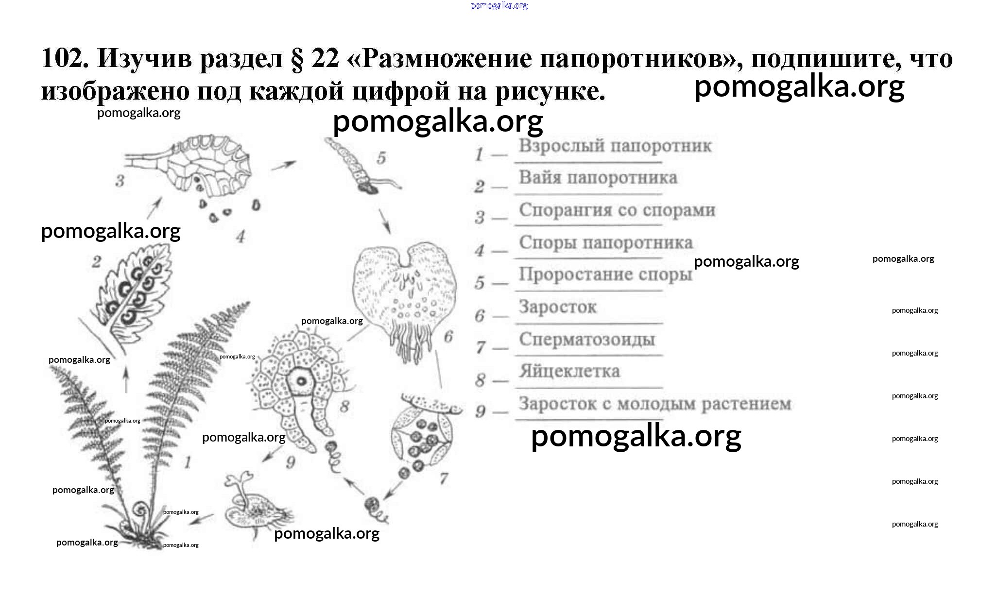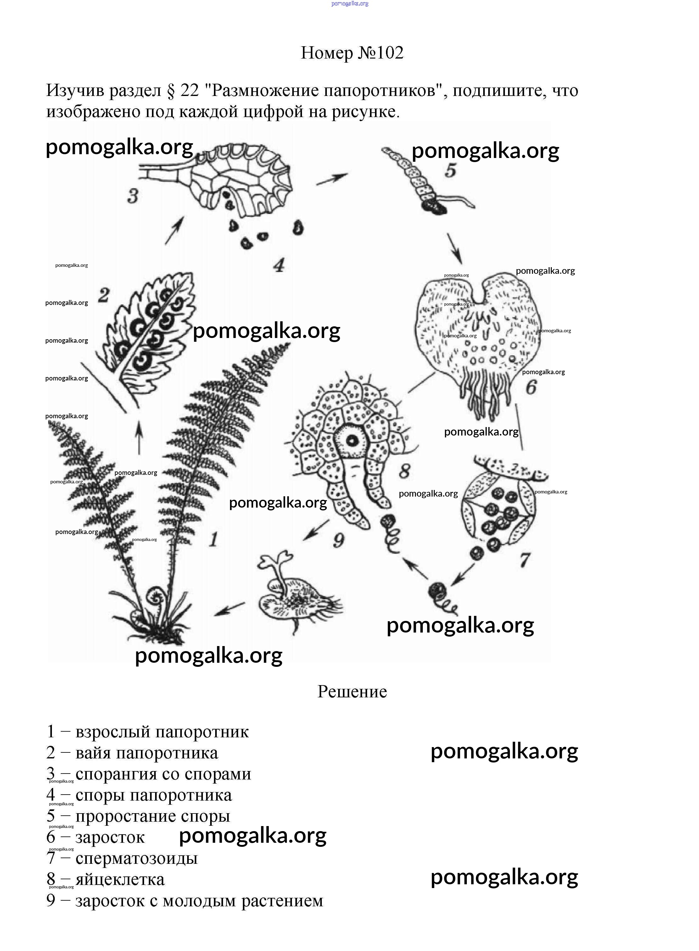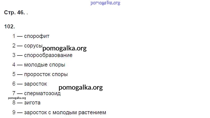 Готовые ответы - Биология 6 класс рабочая тетрадь Пасечник В.В. - упражнение 102