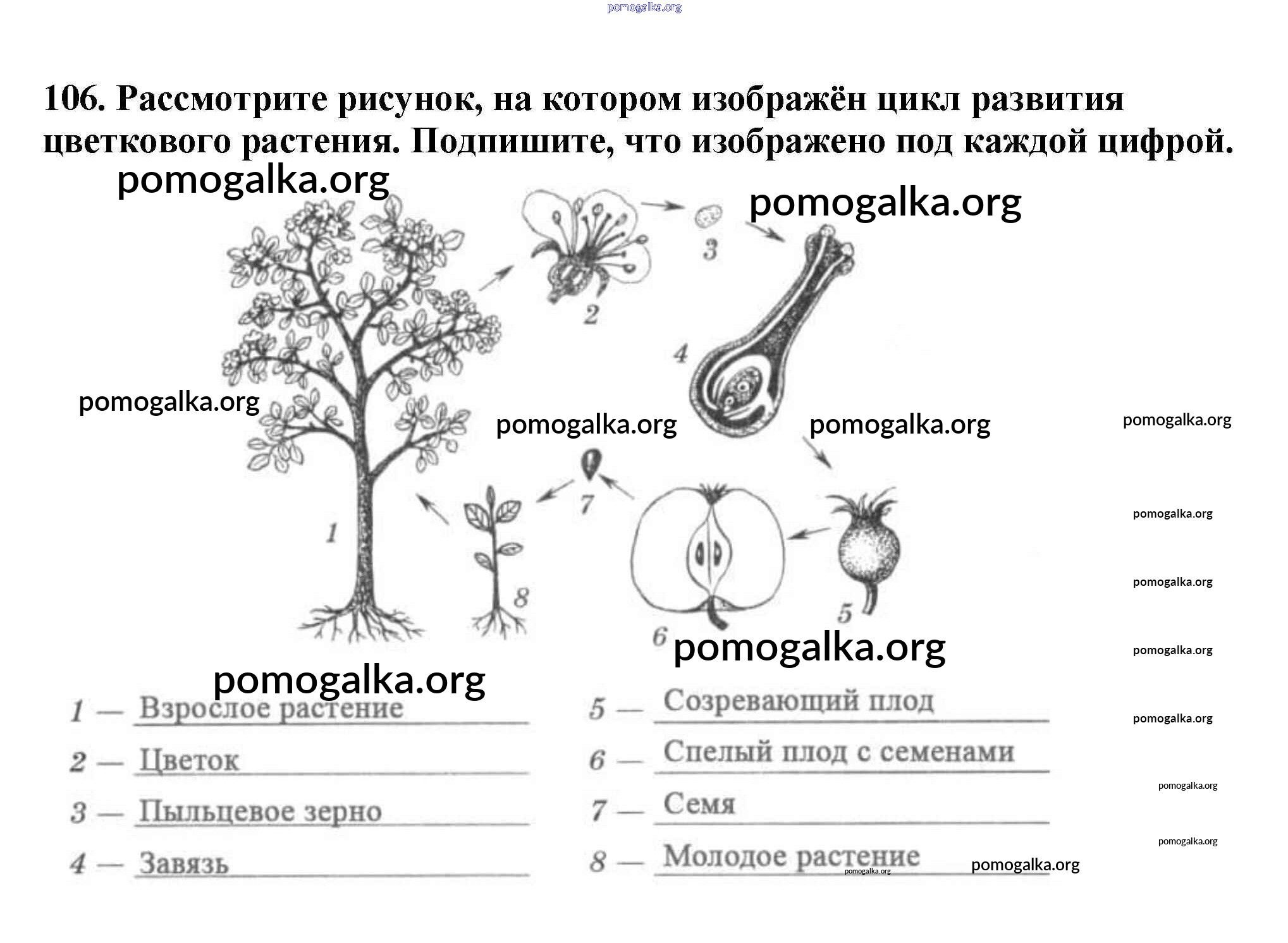 Готовые ответы - Биология 6 класс рабочая тетрадь Пасечник В.В. - упражнение 106