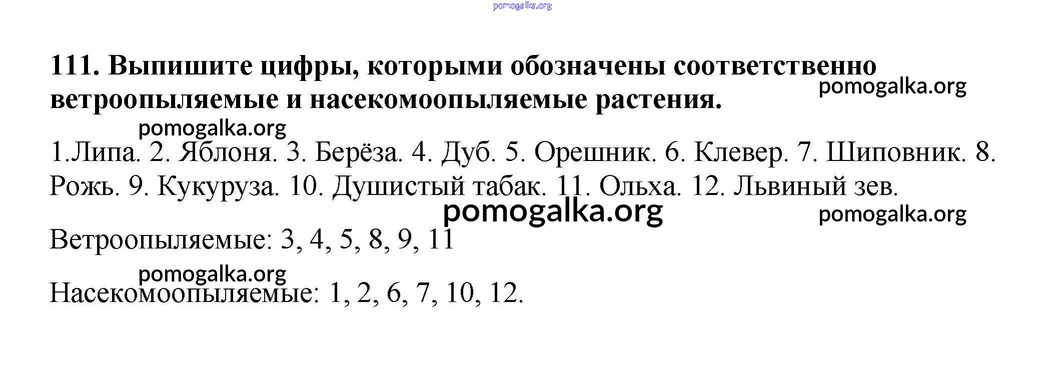 Готовые ответы - Биология 6 класс рабочая тетрадь Пасечник В.В. - упражнение 111