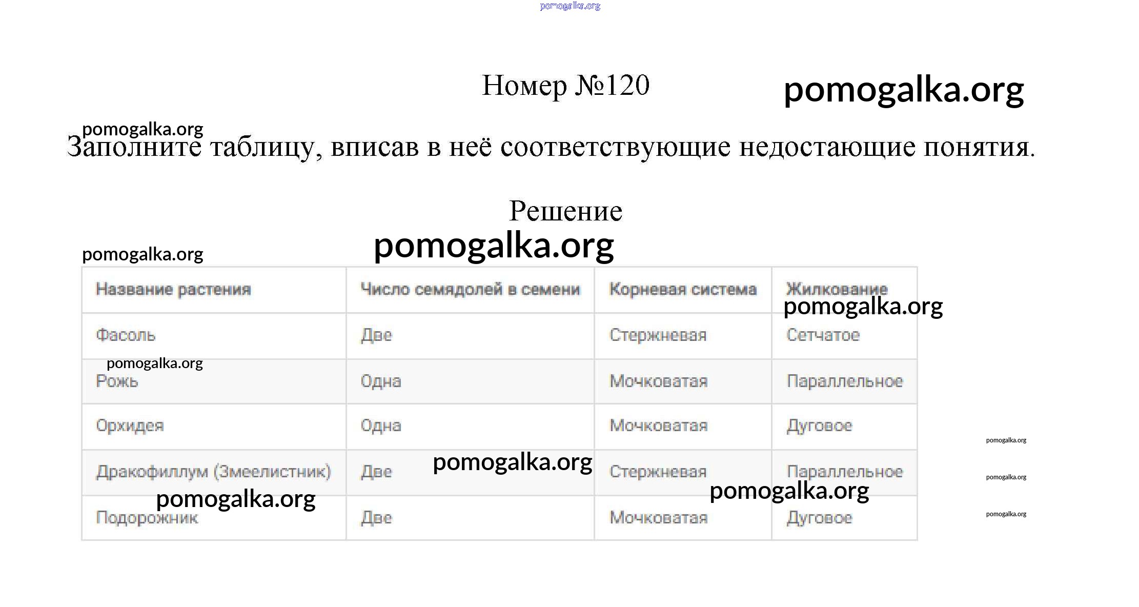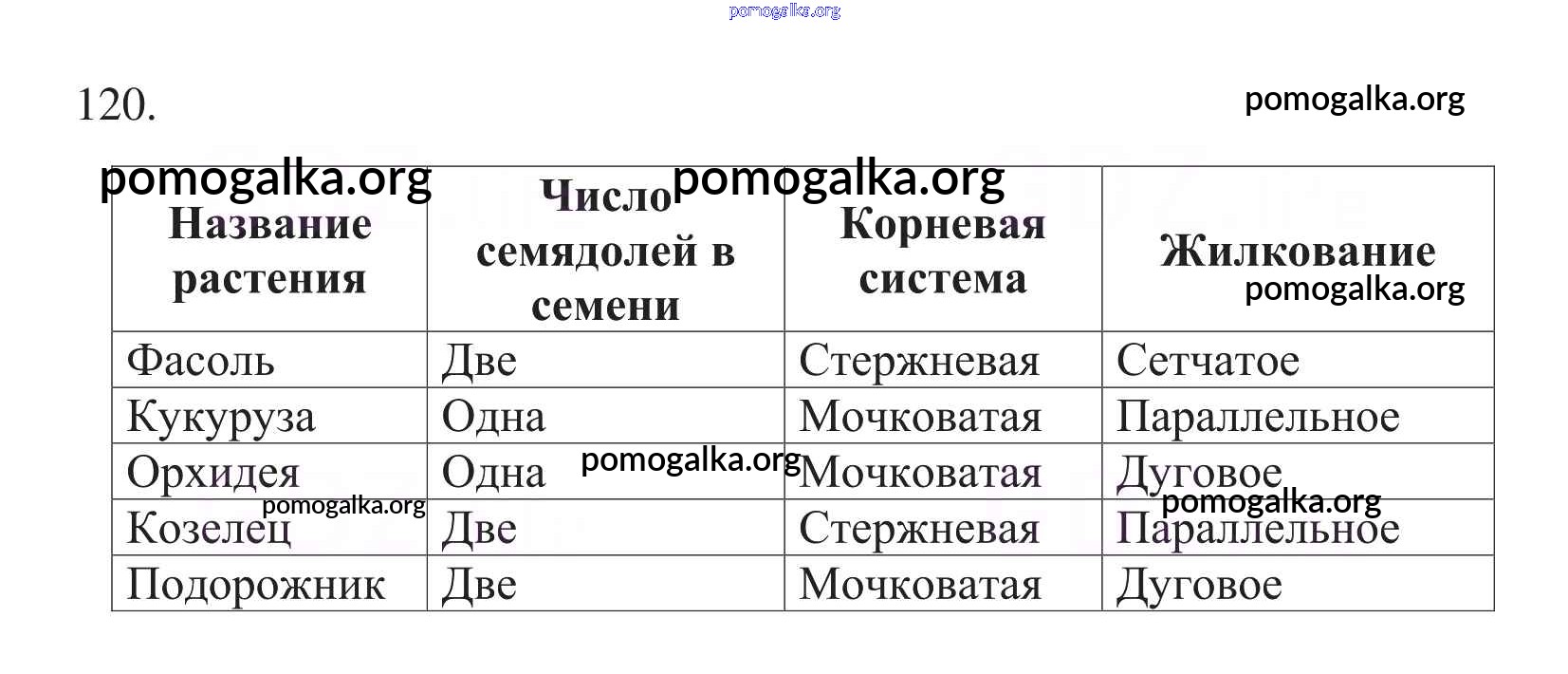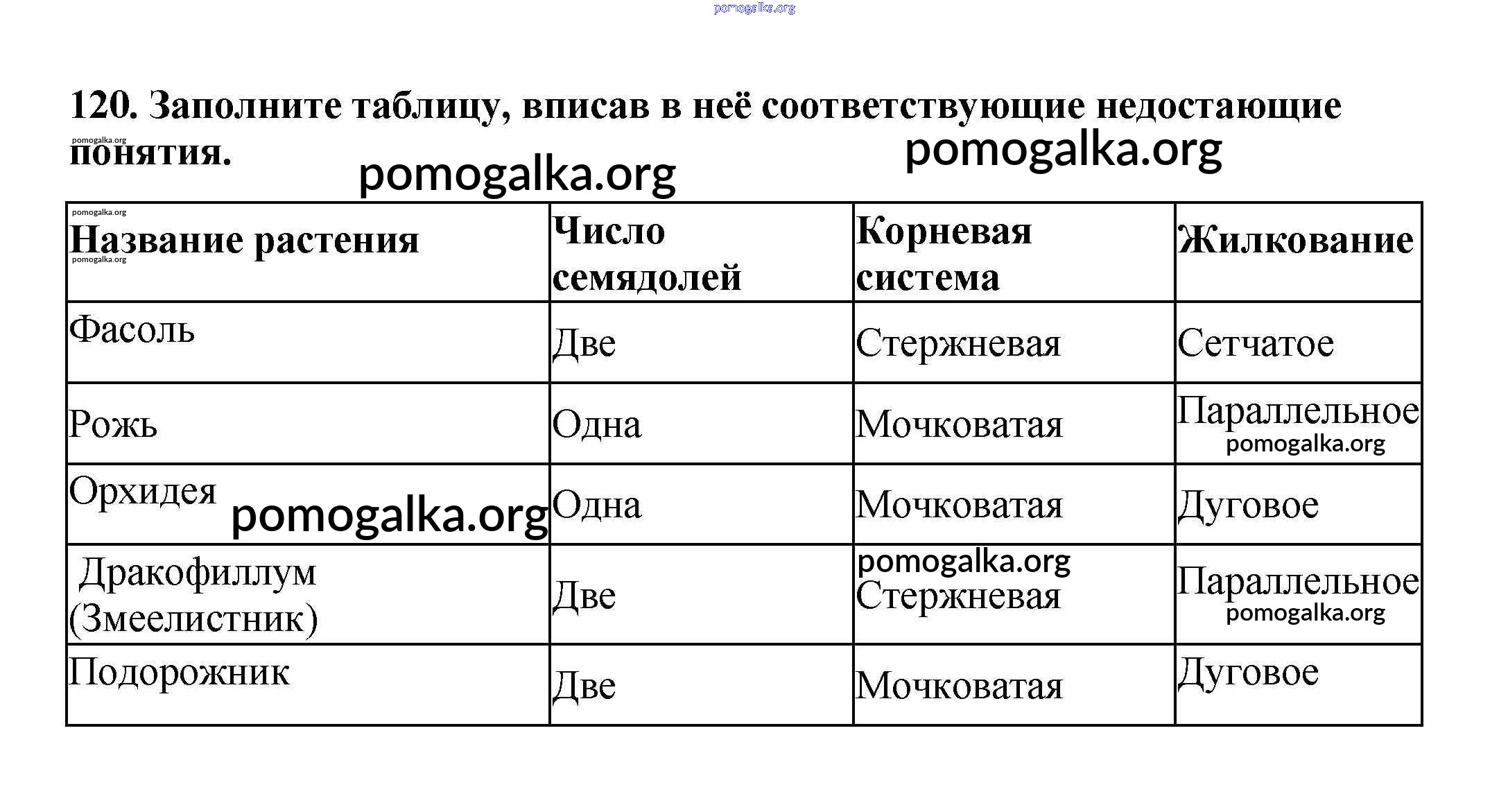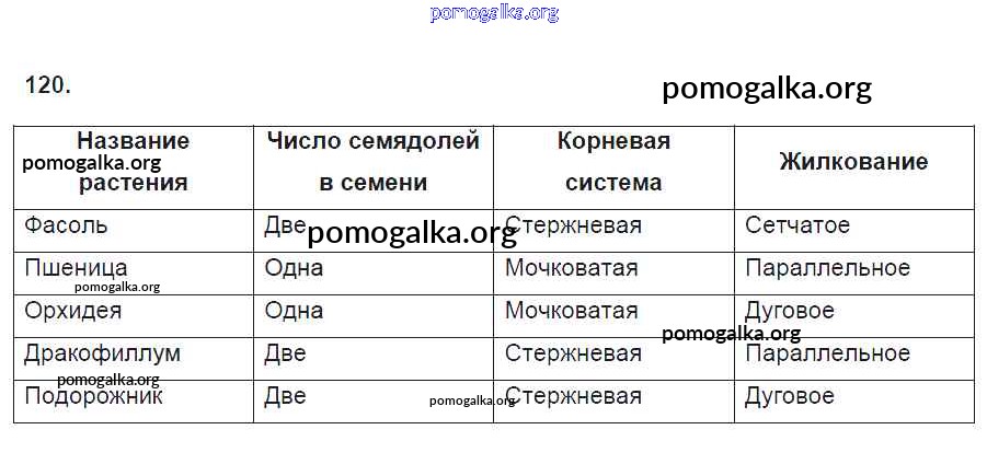 Готовые ответы - Биология 6 класс рабочая тетрадь Пасечник В.В. - упражнение 120