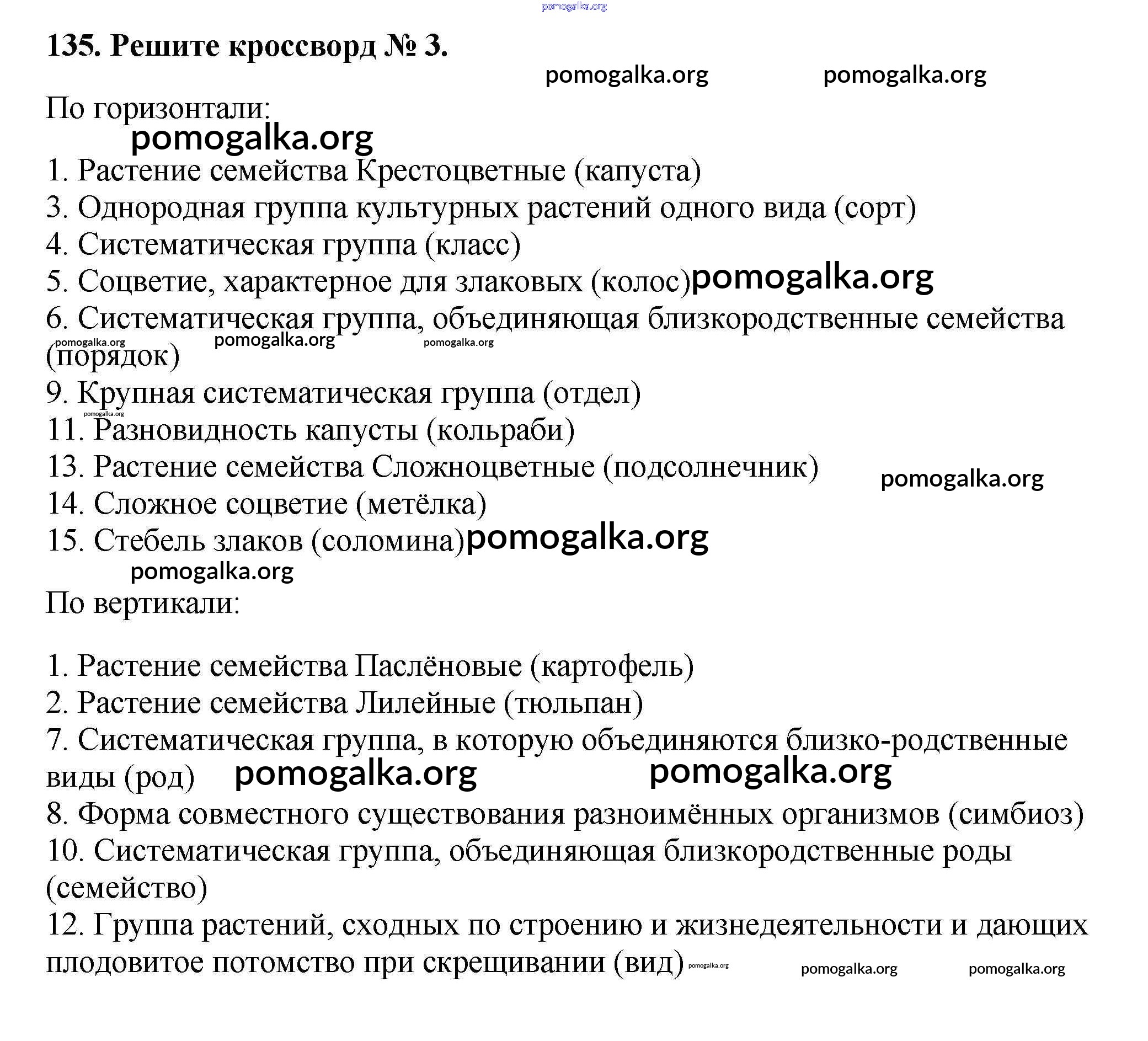 Готовые ответы - Биология 6 класс рабочая тетрадь Пасечник В.В. - упражнение 135