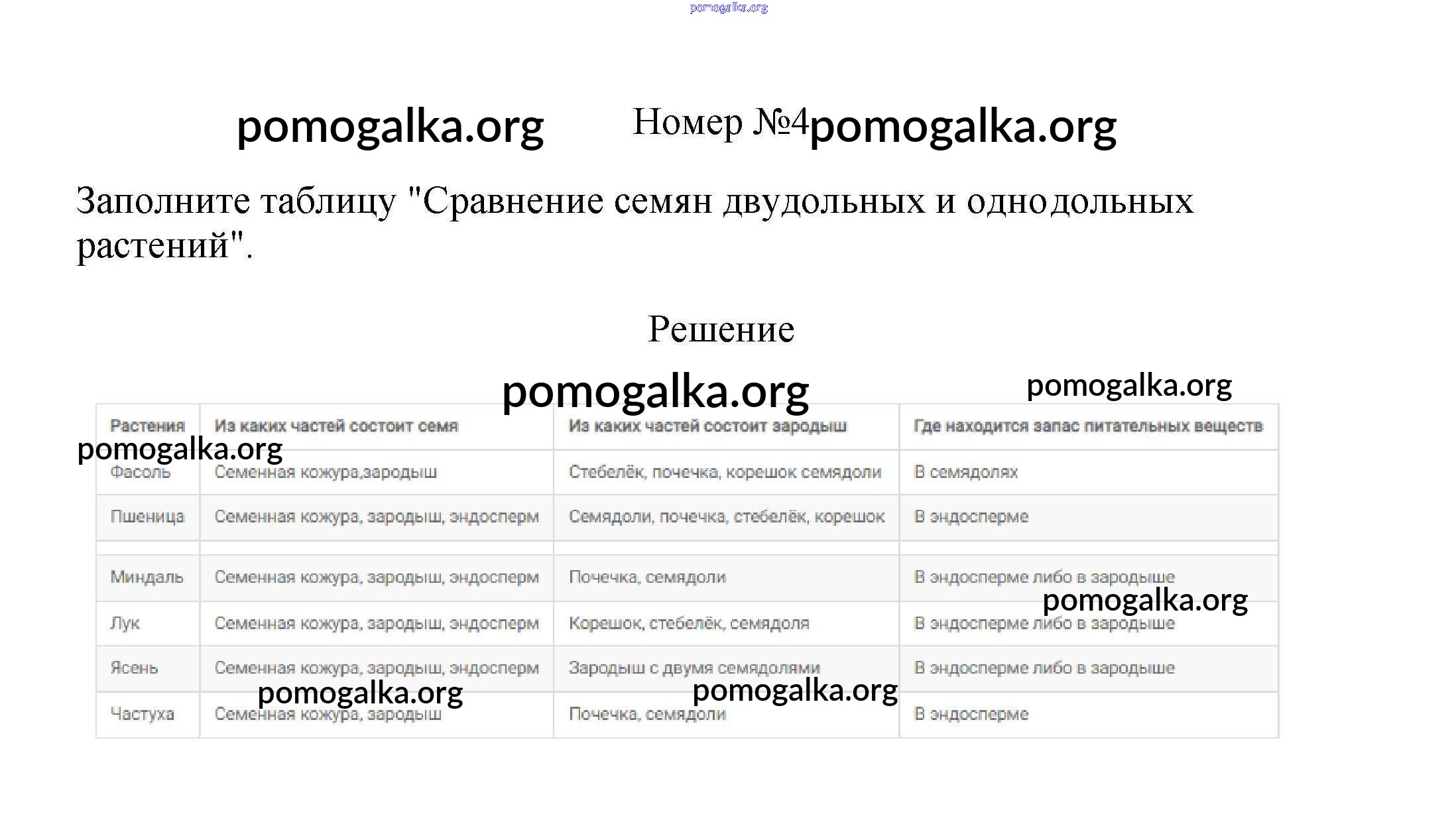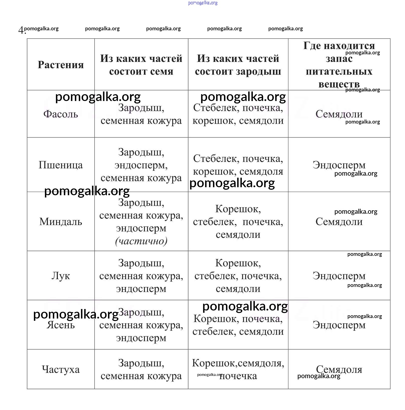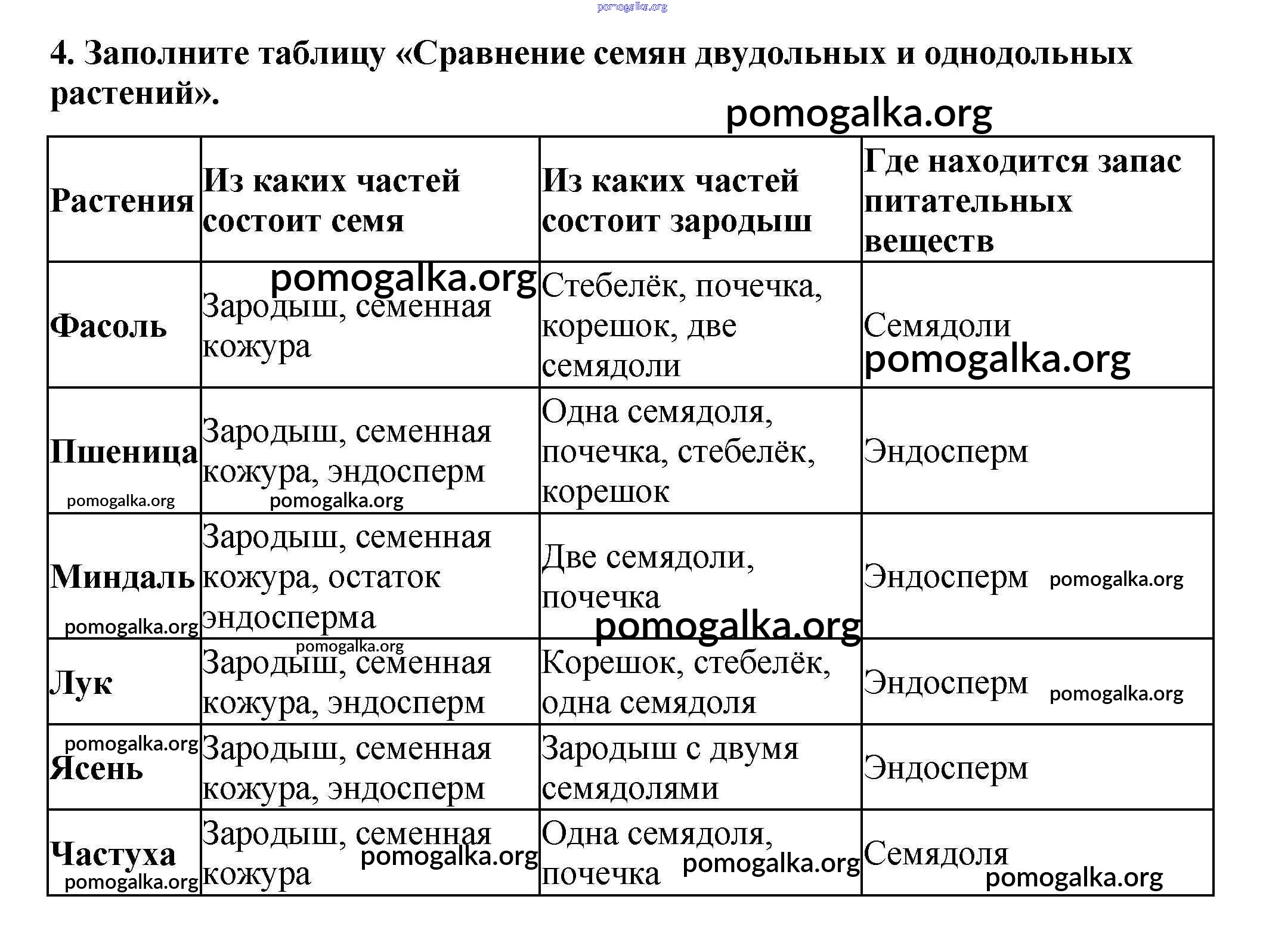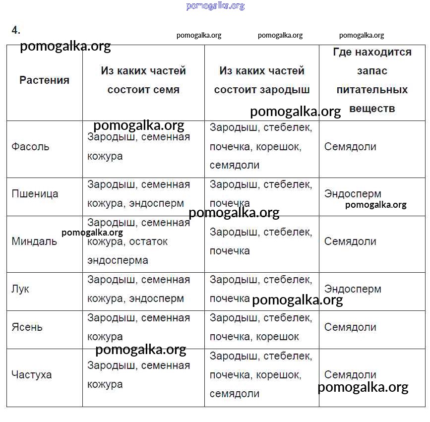 Готовые ответы - Биология 6 класс рабочая тетрадь Пасечник В.В. - упражнение 4