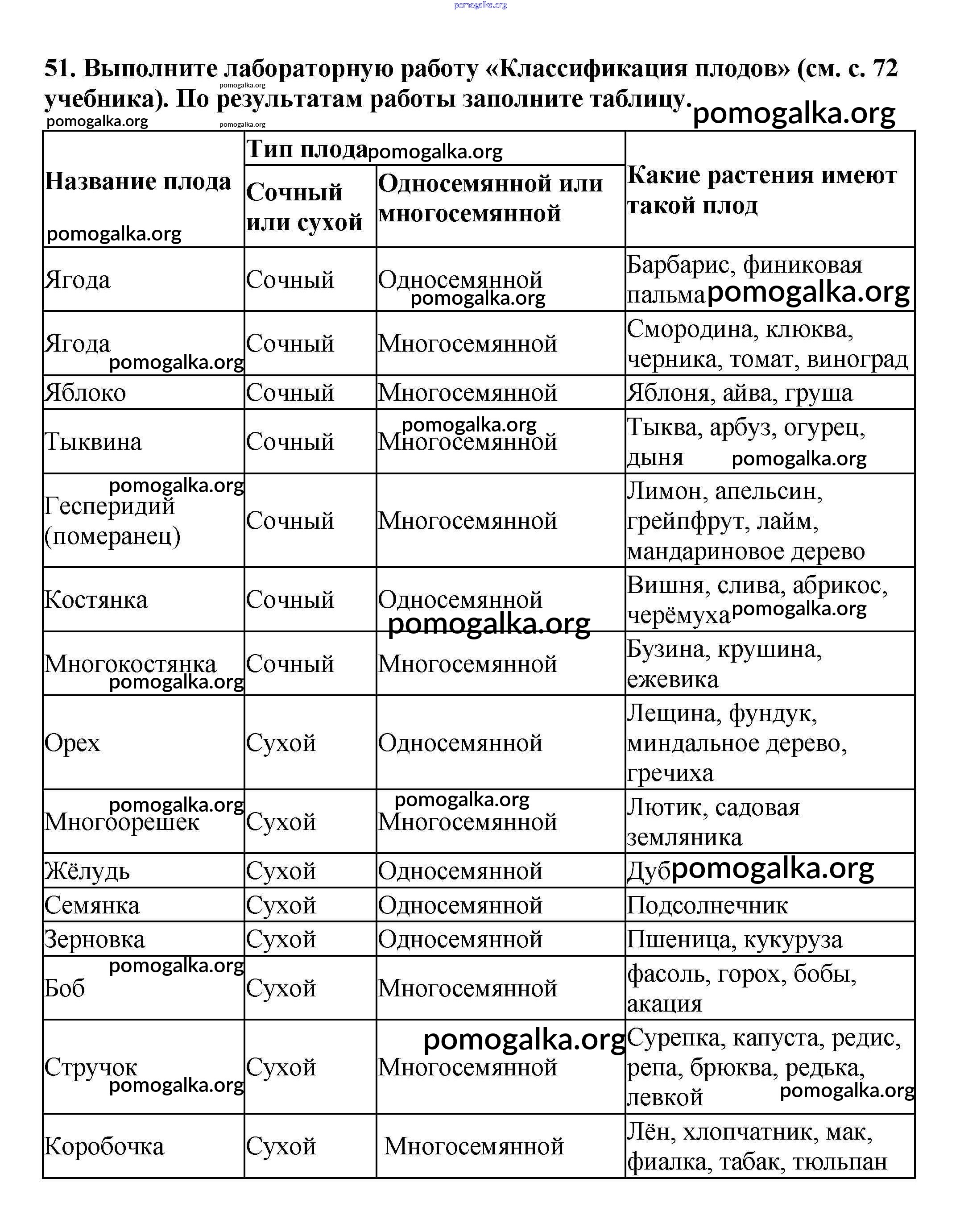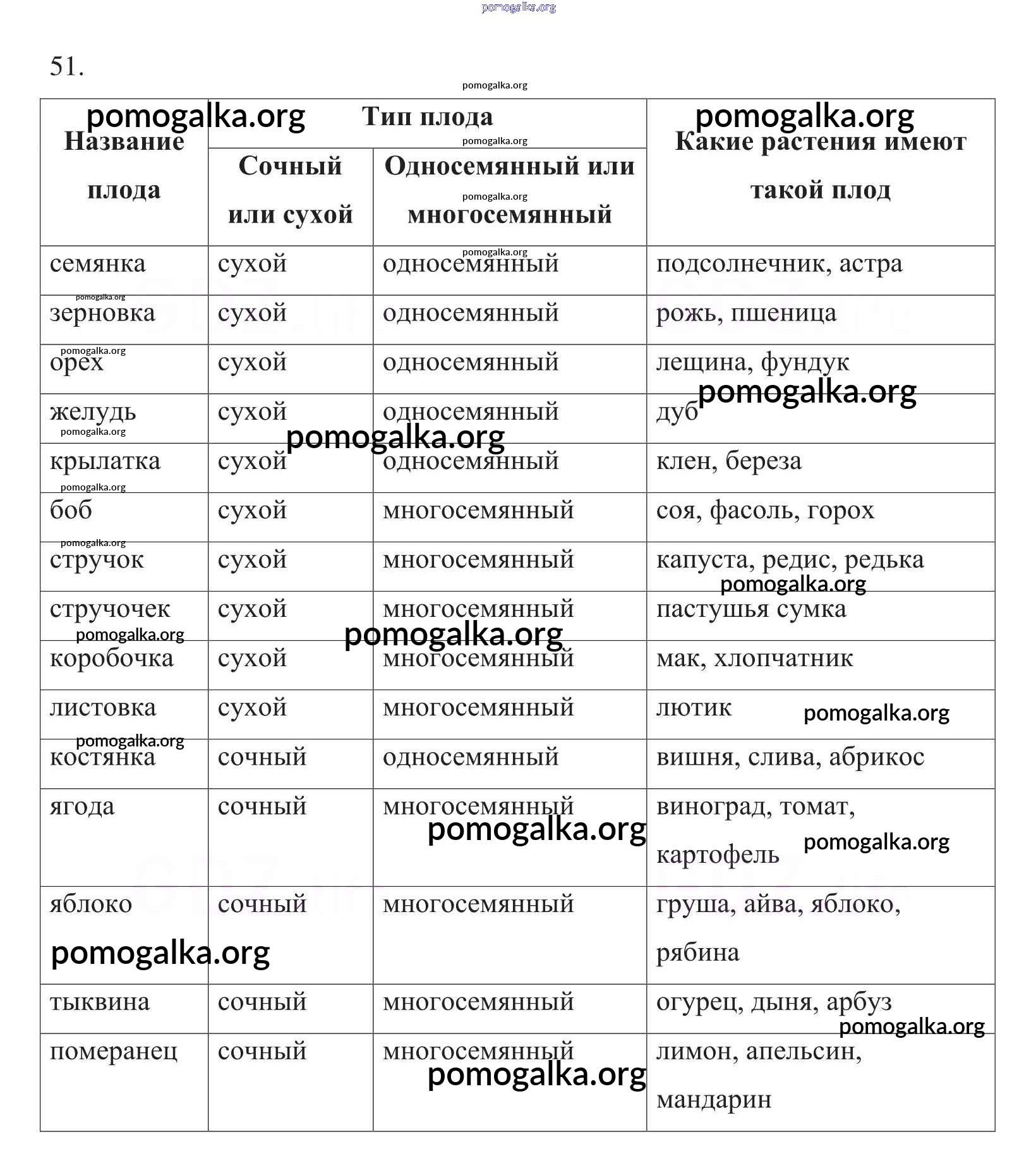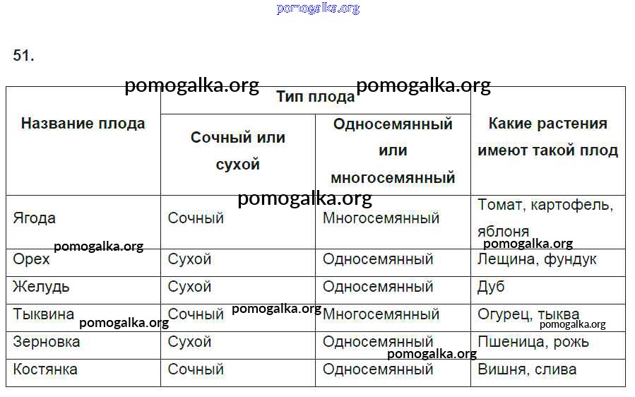 Готовые ответы - Биология 6 класс рабочая тетрадь Пасечник В.В. - упражнение 51