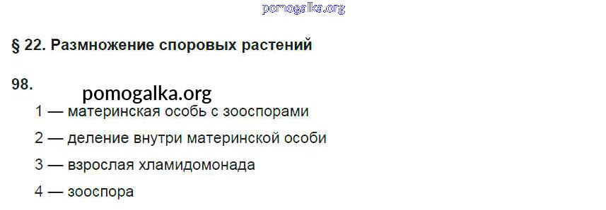 Готовые ответы - Биология 6 класс рабочая тетрадь Пасечник В.В. - упражнение 98