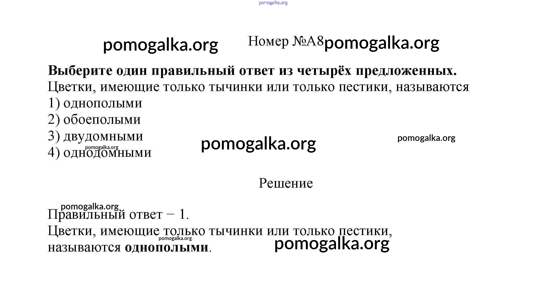 тренировочные задания / строение и многообразие покрытосеменных растений / задания части A / 8