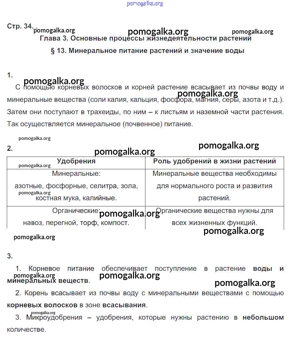 Готовые ответы - Биология 6 класс рабочая тетрадь Пономарева И.Н. - часть 1. страница 34