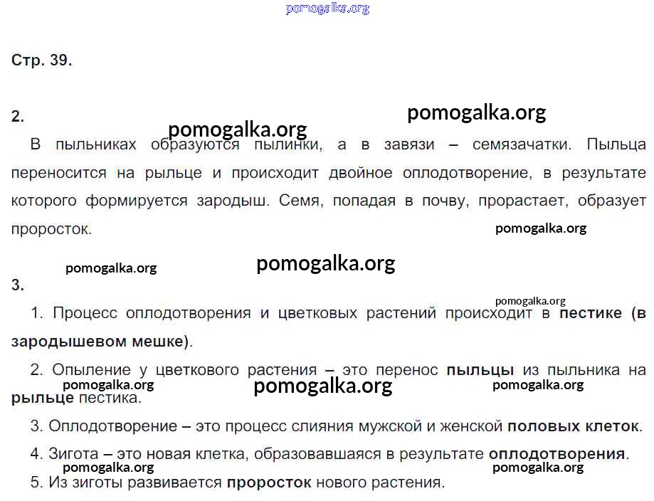 Готовые ответы - Биология 6 класс рабочая тетрадь Пономарева И.Н. - часть 1. страница 39