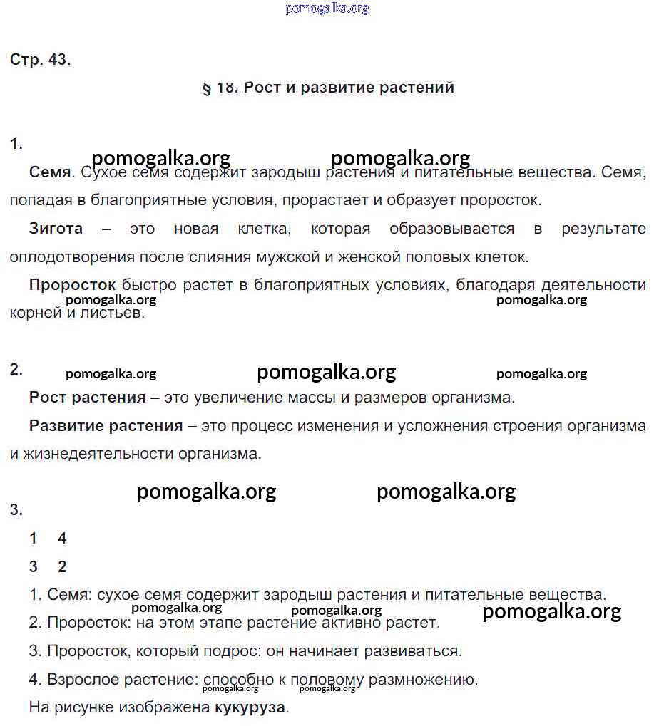 Готовые ответы - Биология 6 класс рабочая тетрадь Пономарева И.Н. - часть 1. страница 43