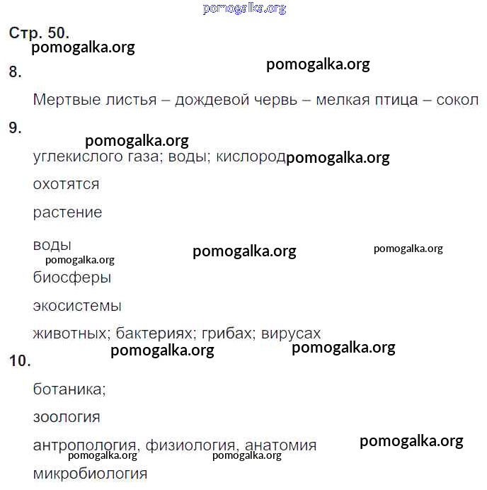 Готовые ответы - Биология 5-6 класс рабочая тетрадь Сухова Т.С. - часть 2. страница 50