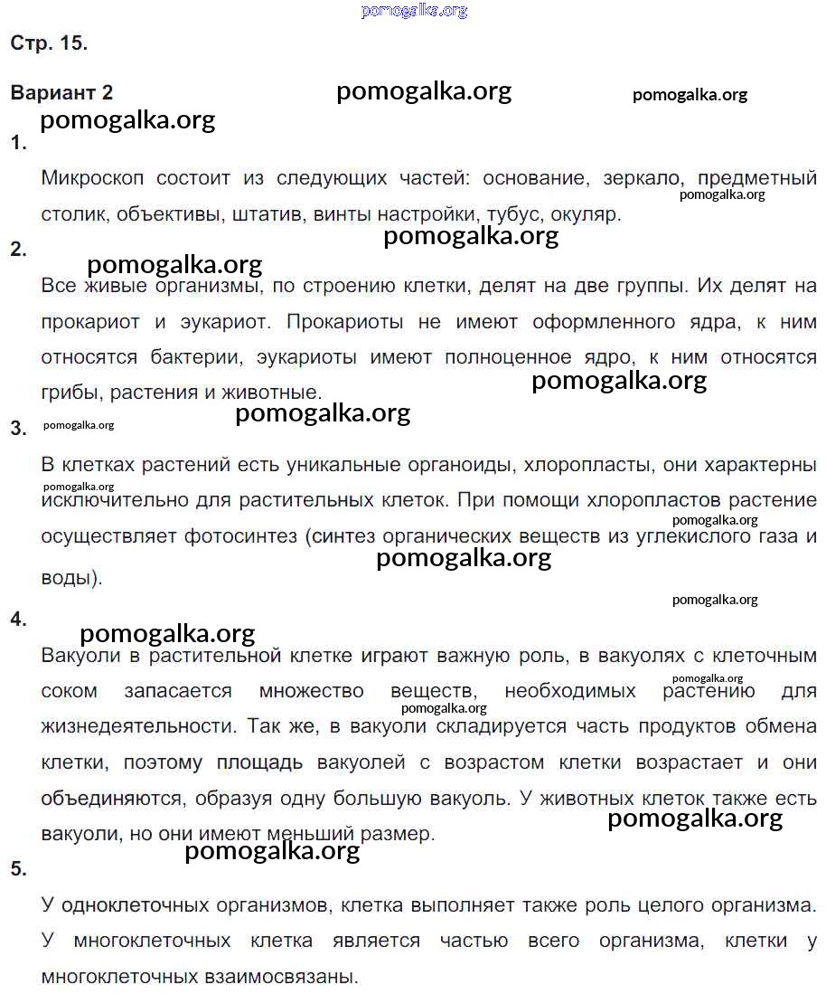 Готовые ответы - Биология 5-6 класс тетрадь-экзаменатор Сухорукова Л.Н. - страница 15