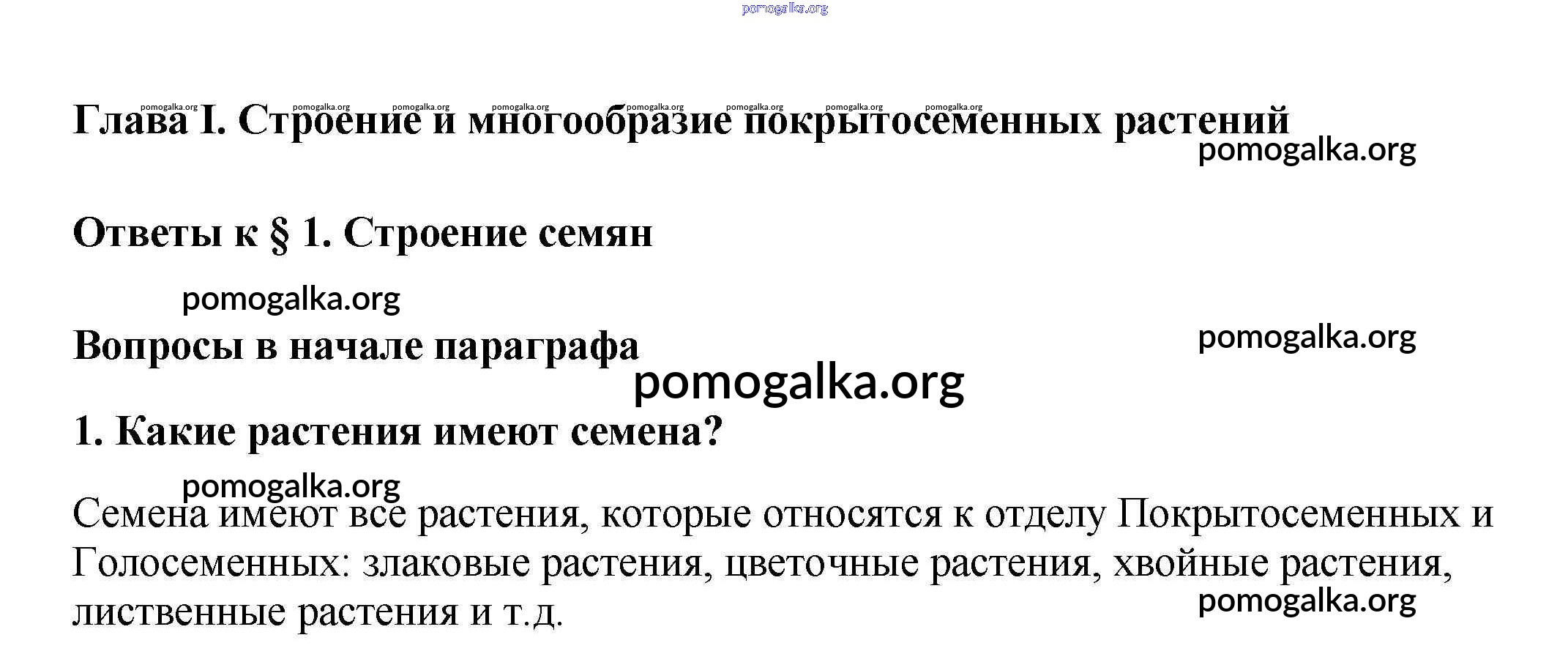 Готовые ответы - Биология 6 класс Многообразие покрытосеменных растений Пасечник В.В. - вопрос в начале параграфа §1 1