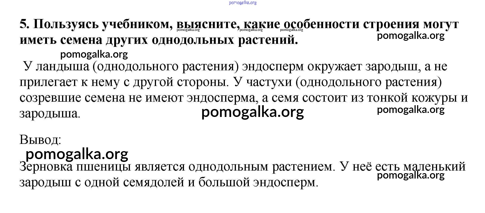 Готовые ответы - Биология 6 класс Многообразие покрытосеменных растений Пасечник В.В. - строение зерновки пшеницы §1 5