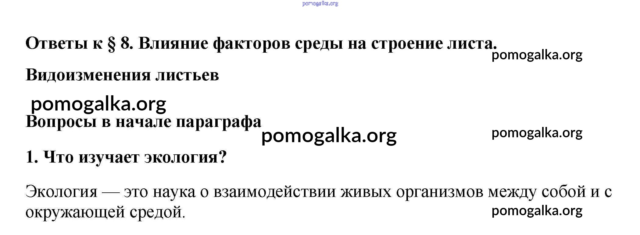 Готовые ответы - Биология 6 класс Многообразие покрытосеменных растений Пасечник В.В. - вопрос в начале параграфа §8 1