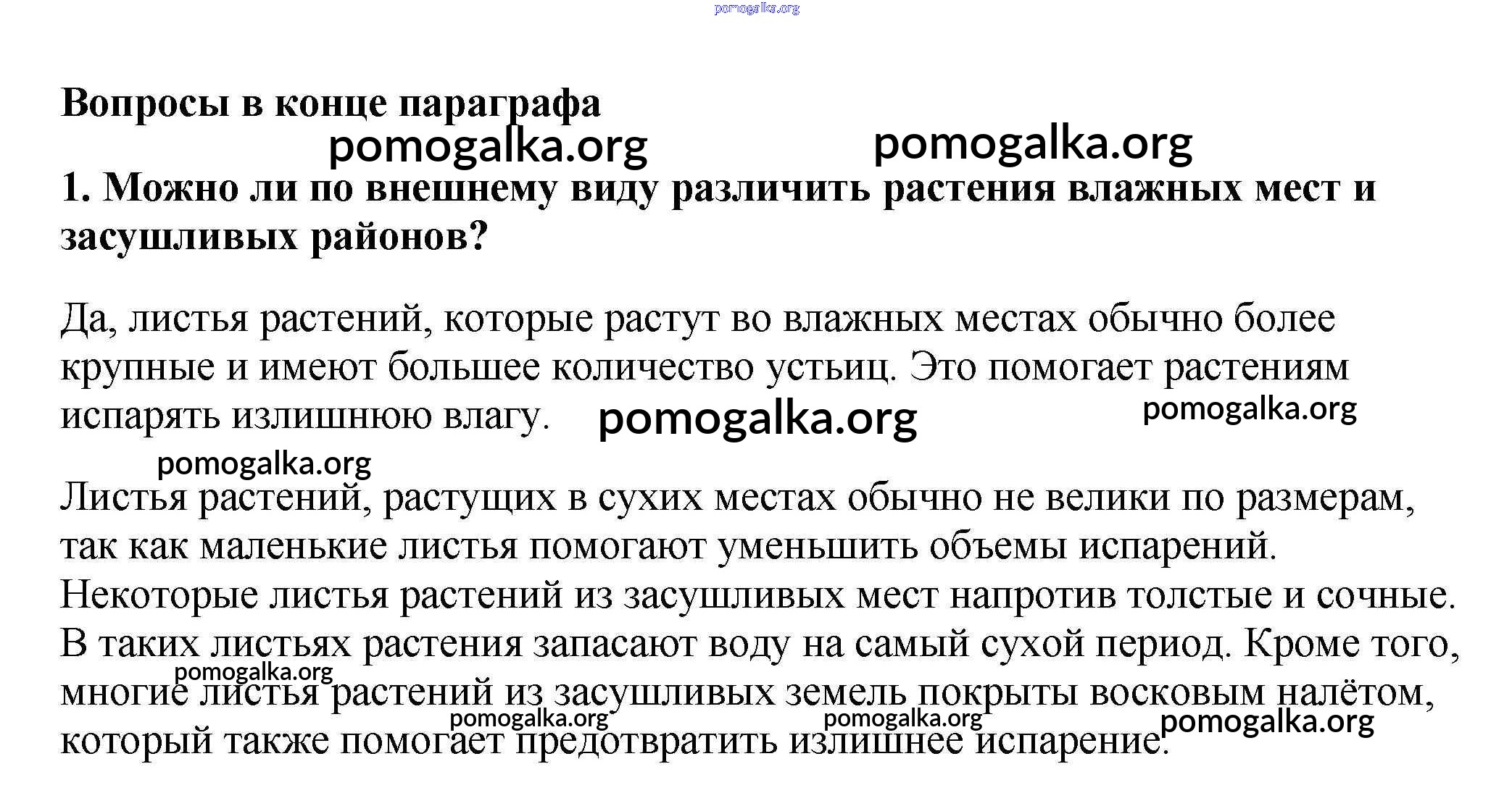 Готовые ответы - Биология 6 класс Многообразие покрытосеменных растений Пасечник В.В. - вопрос в конце параграфа §8 1