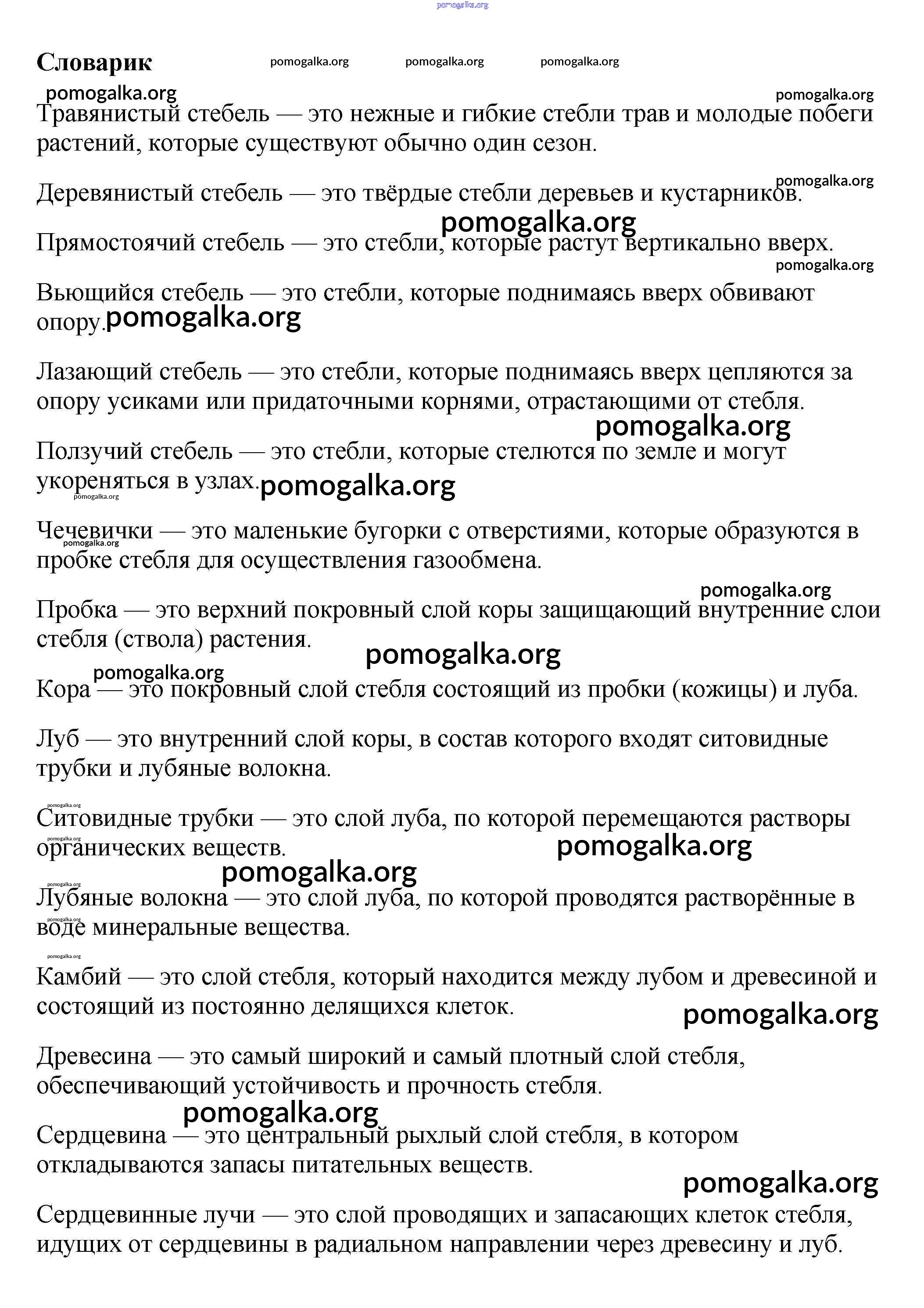 Готовые ответы - Биология 6 класс Многообразие покрытосеменных растений Пасечник В.В. - словарик §9 1