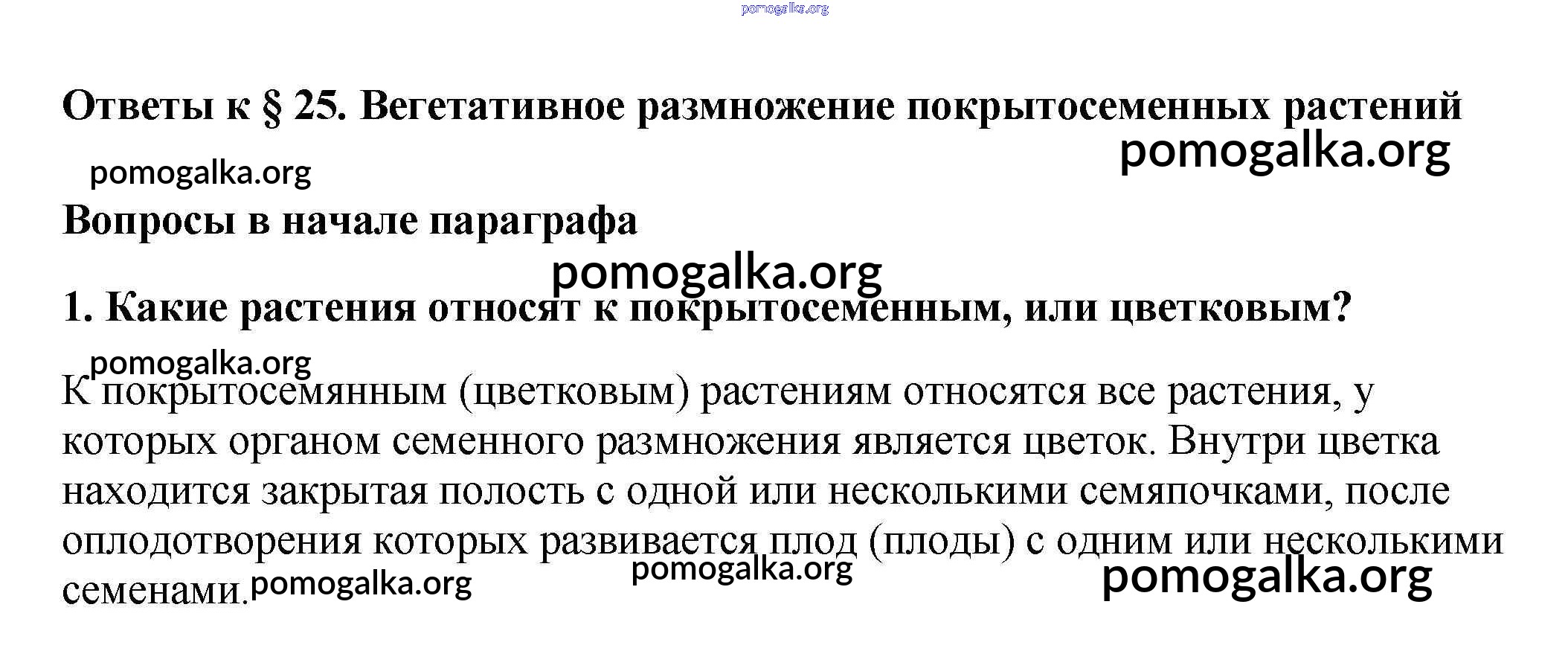 Готовые ответы - Биология 6 класс Многообразие покрытосеменных растений Пасечник В.В. - вопрос в начале параграфа §25 1