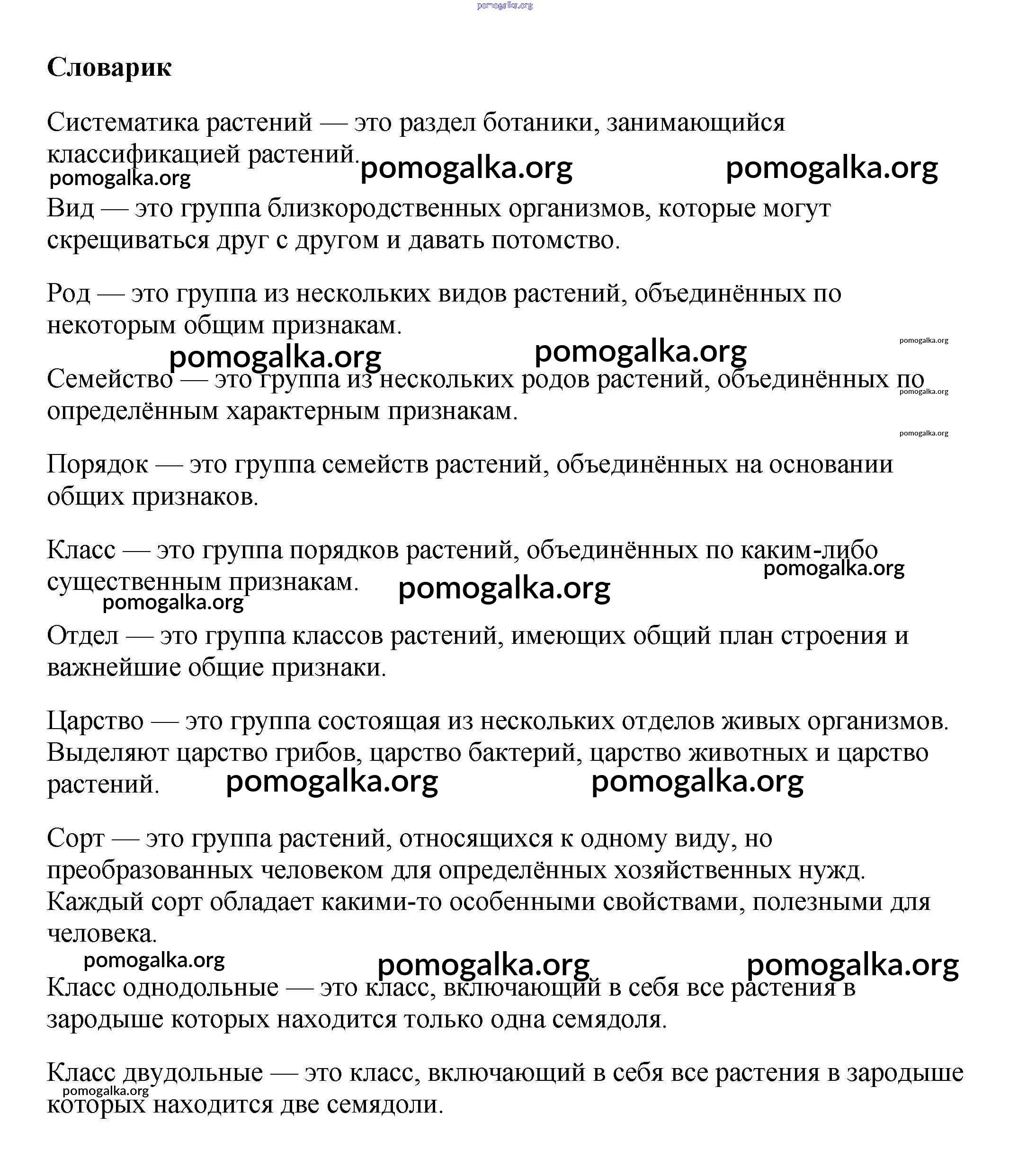 Готовые ответы - Биология 6 класс Многообразие покрытосеменных растений Пасечник В.В. - словарик §26 1