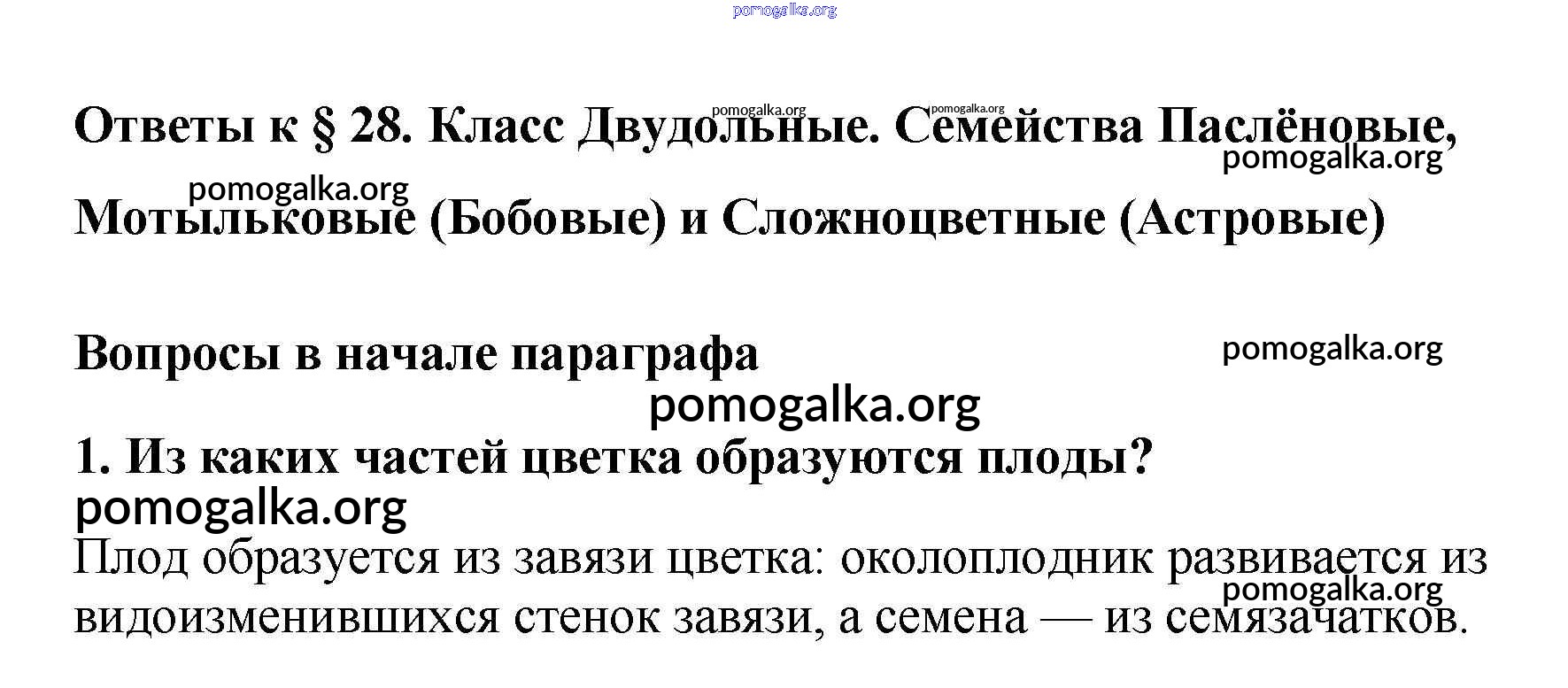 Готовые ответы - Биология 6 класс Многообразие покрытосеменных растений Пасечник В.В. - вопрос в начале параграфа §28 1