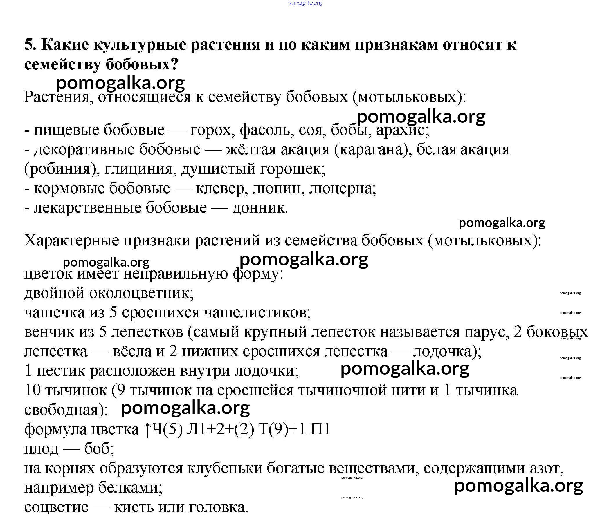 Готовые ответы - Биология 6 класс Многообразие покрытосеменных растений Пасечник В.В. - вопрос в конце параграфа §28 5