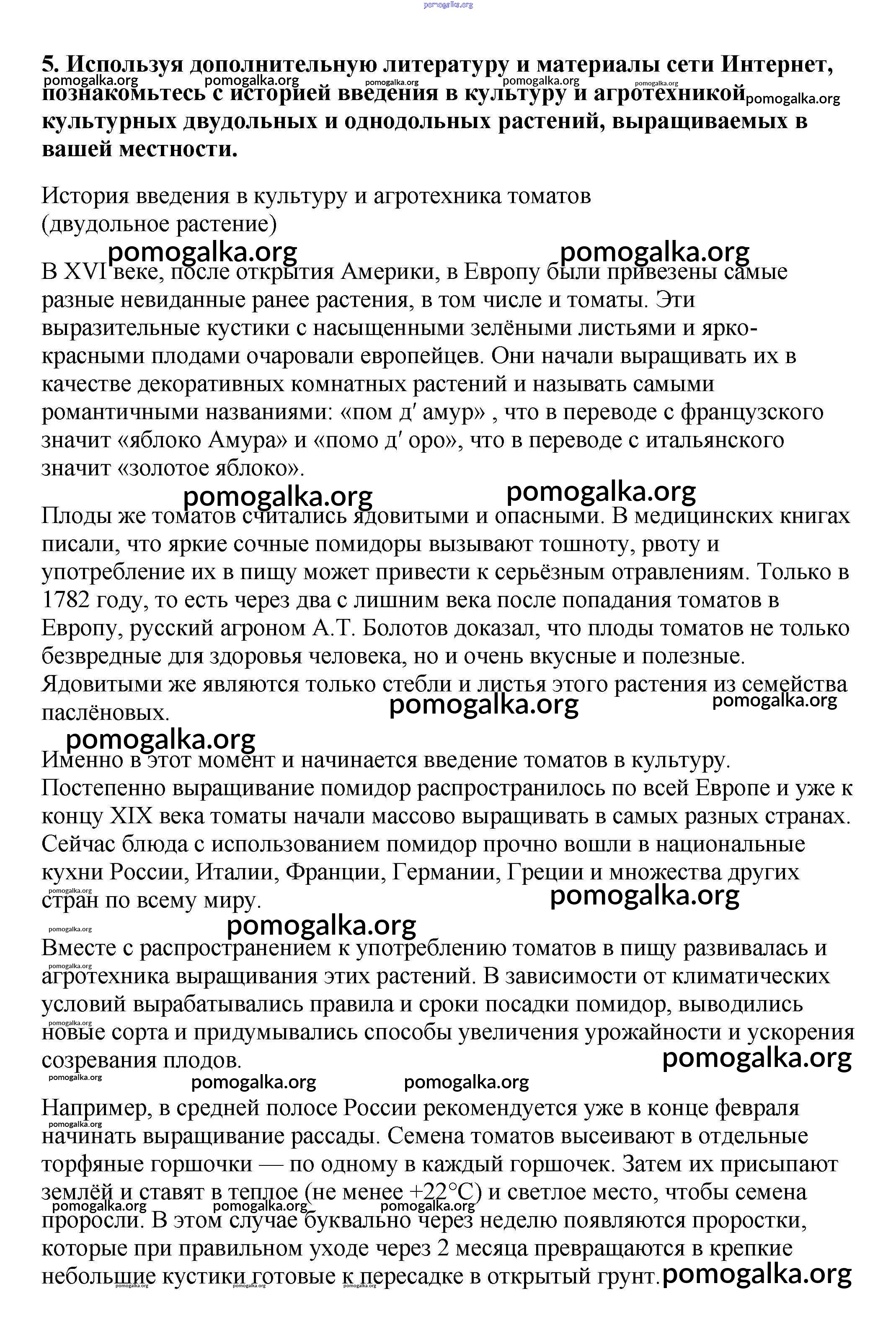 Готовые ответы - Биология 6 класс Многообразие покрытосеменных растений Пасечник В.В. - задание для любознательных §30 5