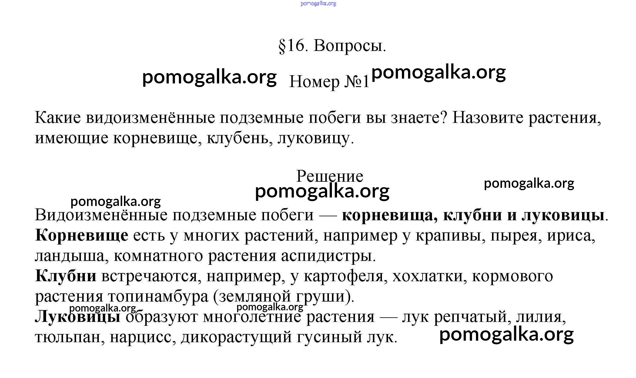 Готовые ответы - Биология 6 класс Пасечник В.В. - вопрос §16 1