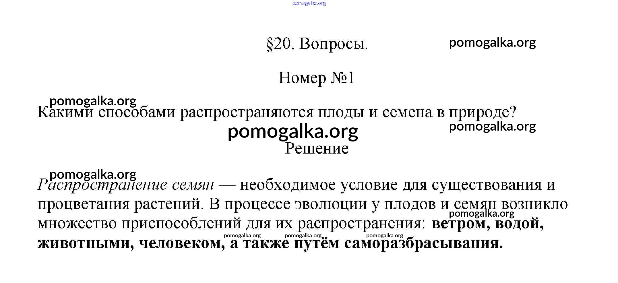 Готовые ответы - Биология 6 класс Пасечник В.В. - вопрос §20 1
