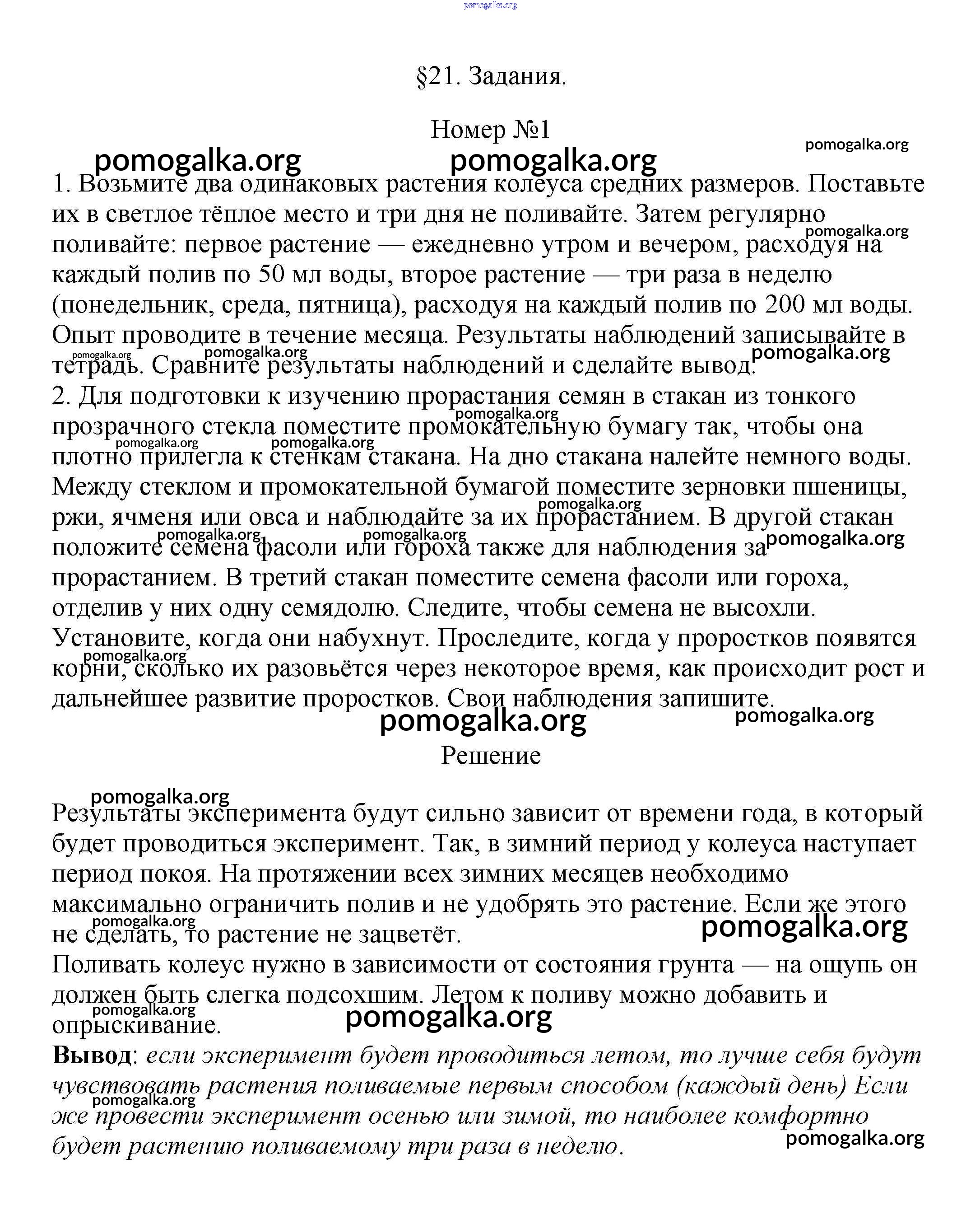 Готовые ответы - Биология 6 класс Пасечник В.В. - задание §21 1
